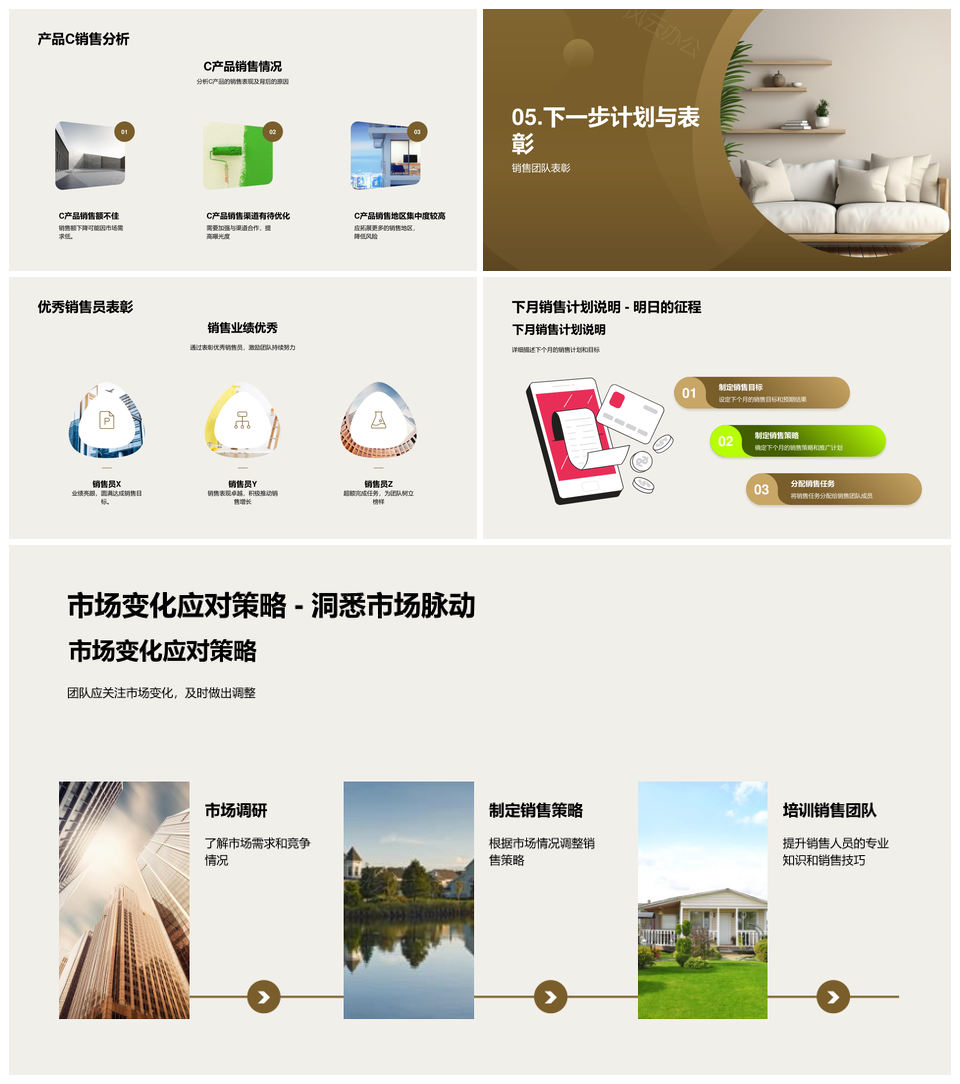 这是一张家居销售业绩分析团队目标战略数据图表PPT模板,包含家居、销售、业绩、分析、团队、目标、战略、数据、图表等主题内容,也可用作家居销售业绩分析、销售业绩分析团队、业绩分析团队目标、分析团队目标战略、团队目标战略数据、目标战略数据图表、家居销售业绩、销售业绩分析、业绩分析团队、分析团队目标、团队目标战略、目标战略数据、战略数据图表、家居销售、销售业绩、业绩分析等PPT场景使用。 风云办公提供的家居销售业绩分析团队目标战略数据图表PPT模板,下载格式为pptx,一共23页,作品中文字及图均可以修改和编辑,图片更改请在作品中右键图片并更换,文字修改请直接点击文字进行修改。
