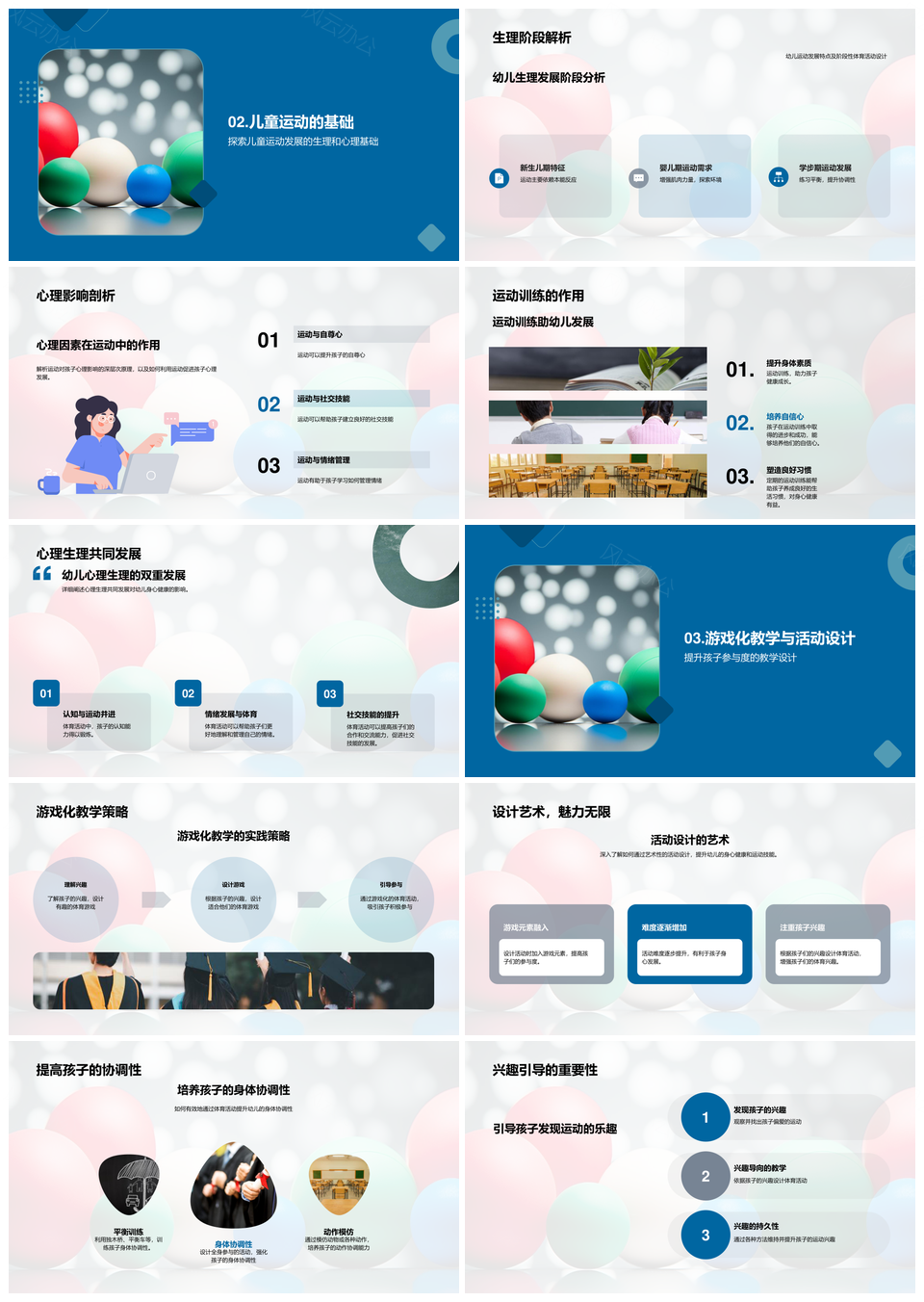 这是一张幼儿体育启蒙游戏化彩色球教育PPT模板,包含幼儿、体育、启蒙、游戏化、彩色球、教育等主题内容,也可用作幼儿体育启蒙游戏化、幼儿体育游戏化教育、体育启蒙游戏化教育、幼儿游戏化彩色球教育、体育游戏化彩色球教育、启蒙游戏化彩色球教育、幼儿体育启蒙、体育启蒙游戏化、幼儿体育教育、体育游戏化彩色球、游戏化彩色球教育、幼儿体育、彩色球教育、体育启蒙、幼儿教育等PPT场景使用。