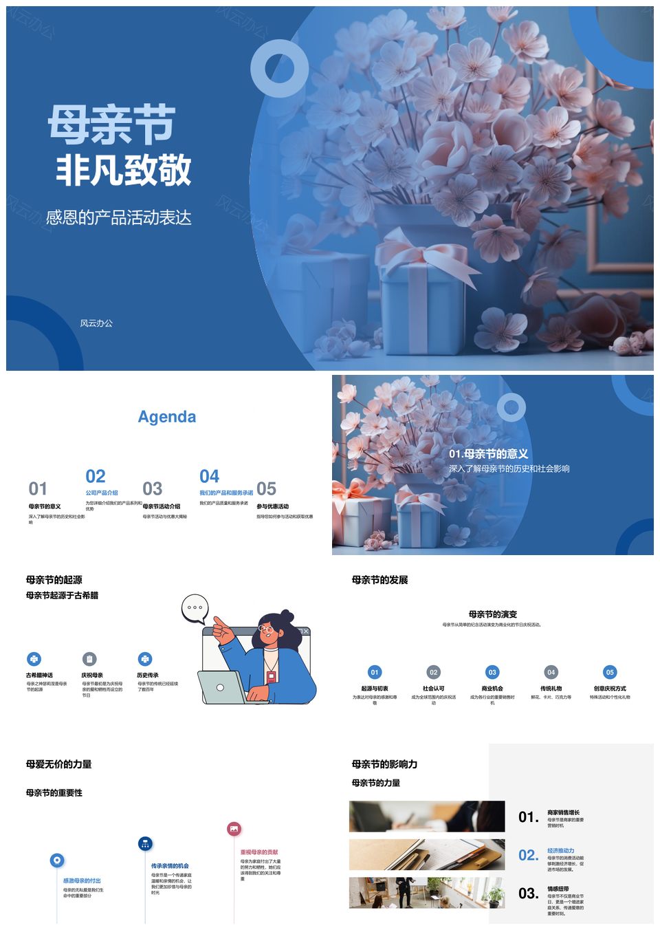 风云办公提供的母亲节花束系列特惠献礼营销活动PPT模板,下载格式为pptx,一共33页,作品中文字及图均可以修改和编辑,图片更改请在作品中右键图片并更换,文字修改请直接点击文字进行修改。
