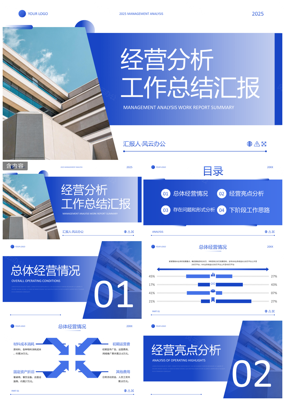 这是一张2025蓝色简约实景几何经营分析工作汇报PPT模板,包含2025、蓝色、简约、实景、几何、经营分析、工作汇报等主题内容,也可用作2025蓝色简约实景几何经营分析、2025蓝色简约实景、蓝色简约实景几何、简约实景几何经营、实景几何经营分析、几何经营分析工作、经营分析工作汇报、2025蓝色简约、蓝色简约实景、简约实景几何、实景几何经营、几何经营分析、经营分析工作、分析工作汇报、蓝色实景几何等PPT场景使用。 风云办公提供的2025蓝色简约实景几何经营分析工作汇报PPT模板,下载格式为pptx,一共20页,作品中文字及图均可以修改和编辑,图片更改请在作品中右键图片并更换,文字修改请直接点击文字进行修改。