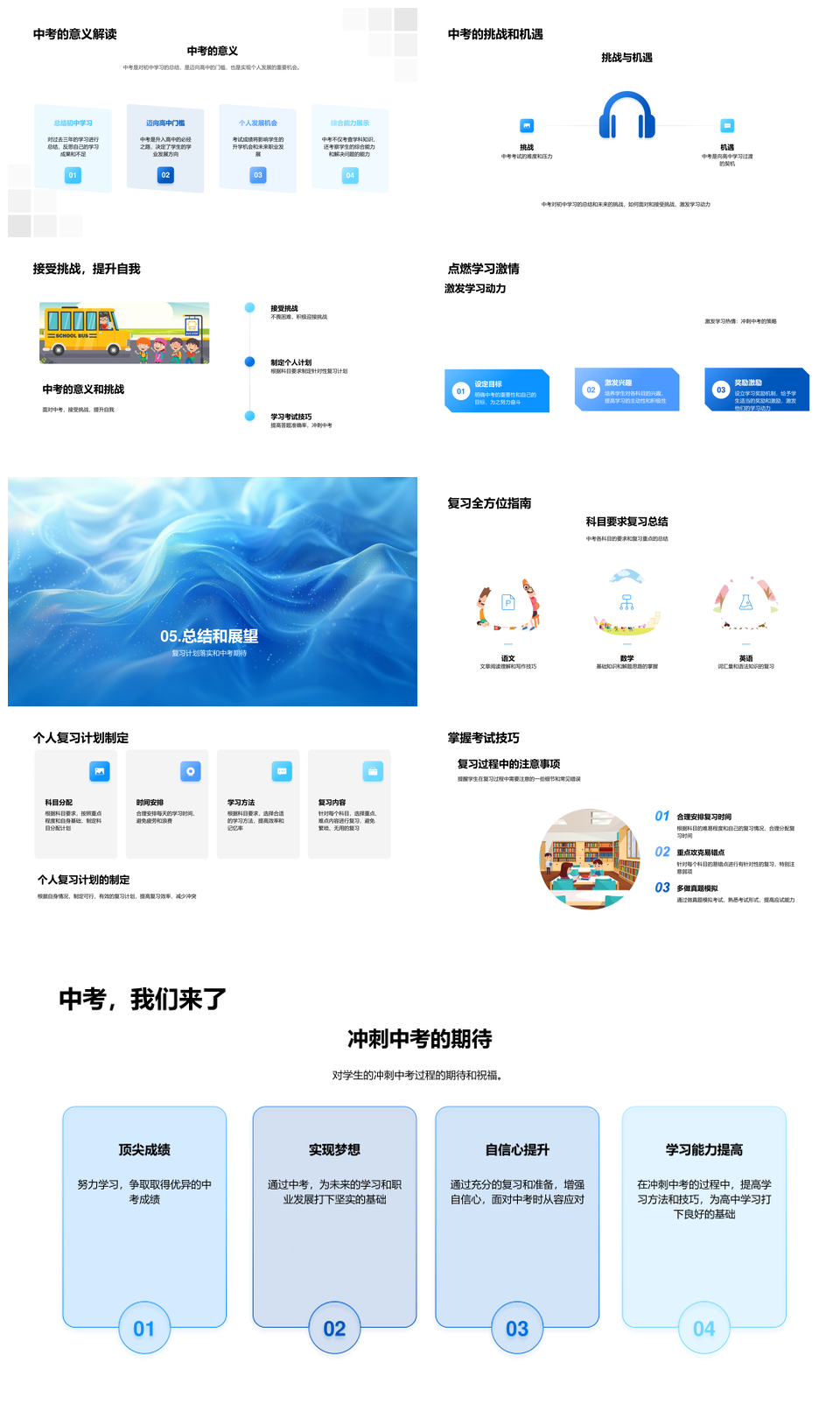 中考备考科目解析复习策略时间管理解题技巧PPT模板推荐