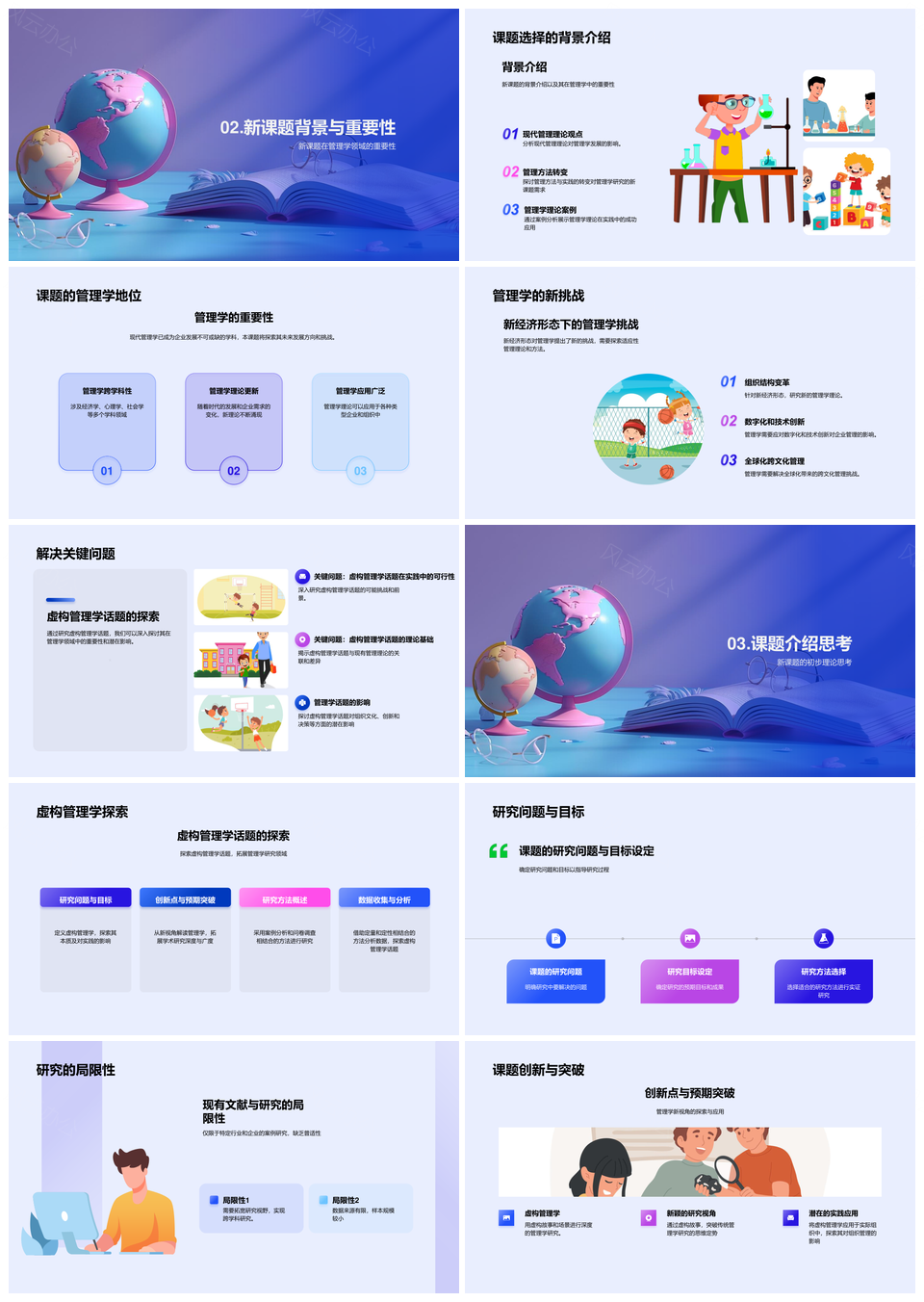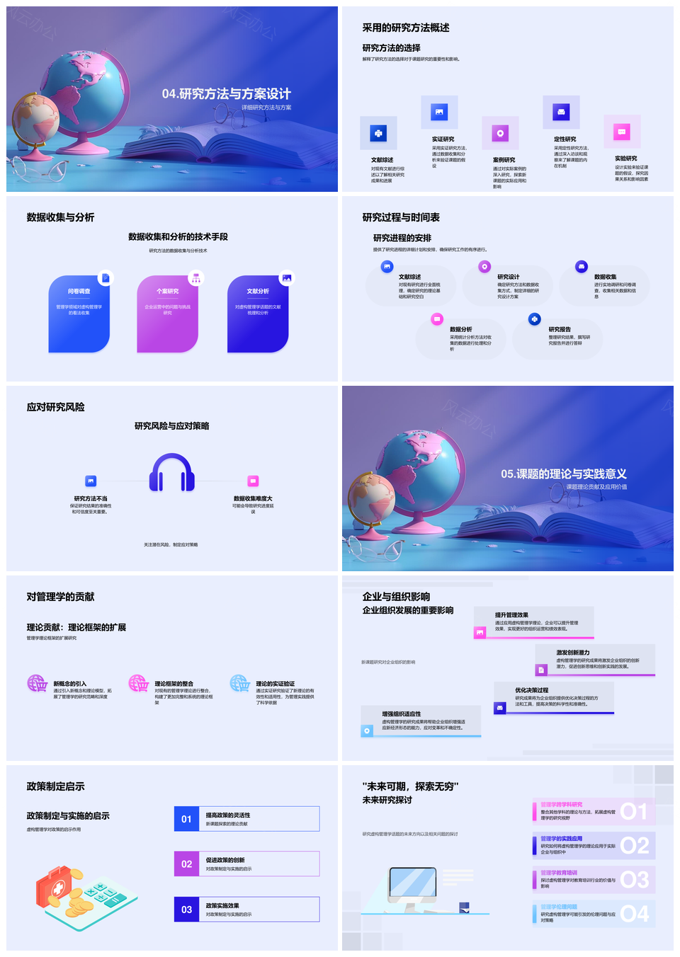 管理学答辩理论应用技巧与课题挑战科研展示PPT模板