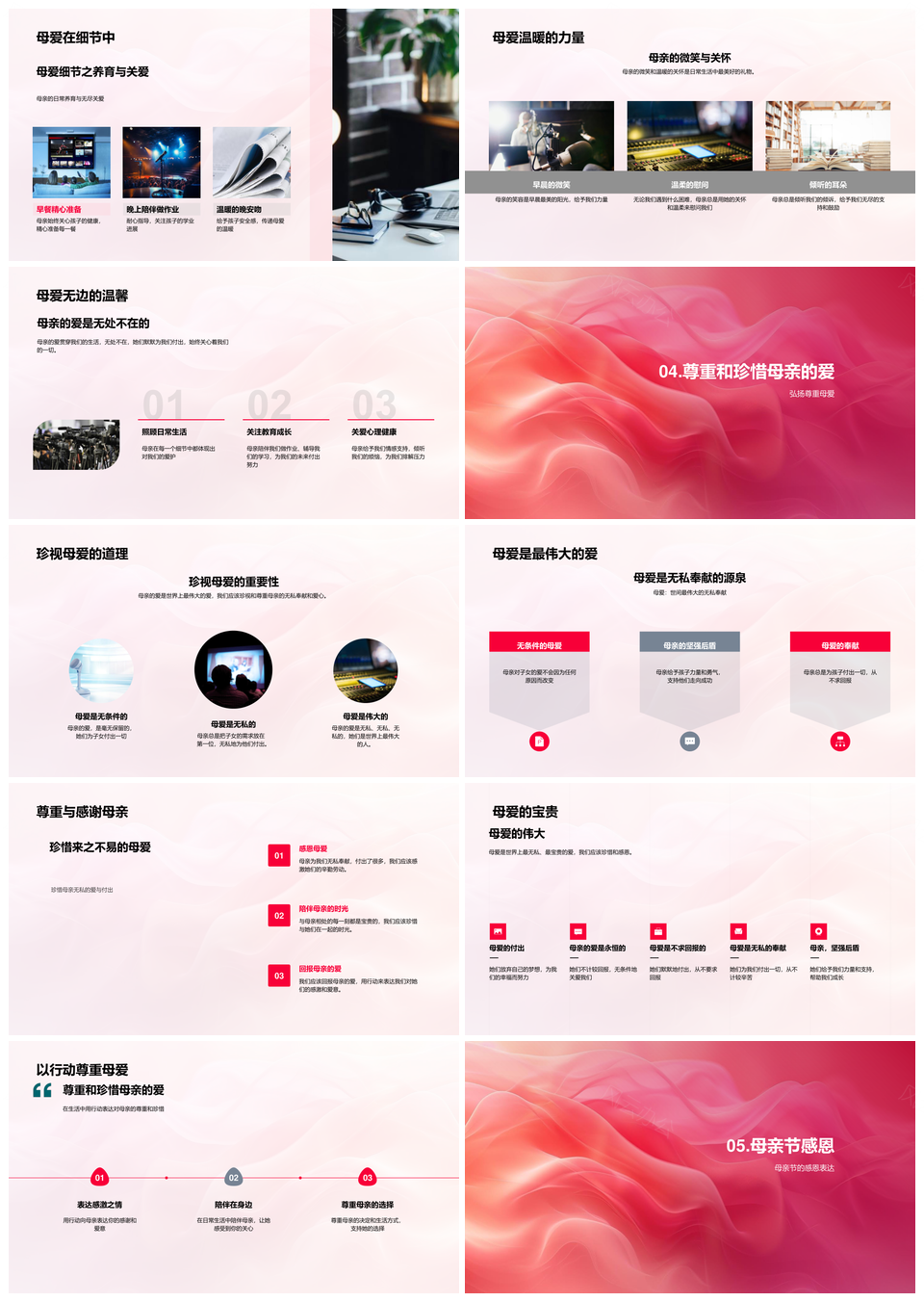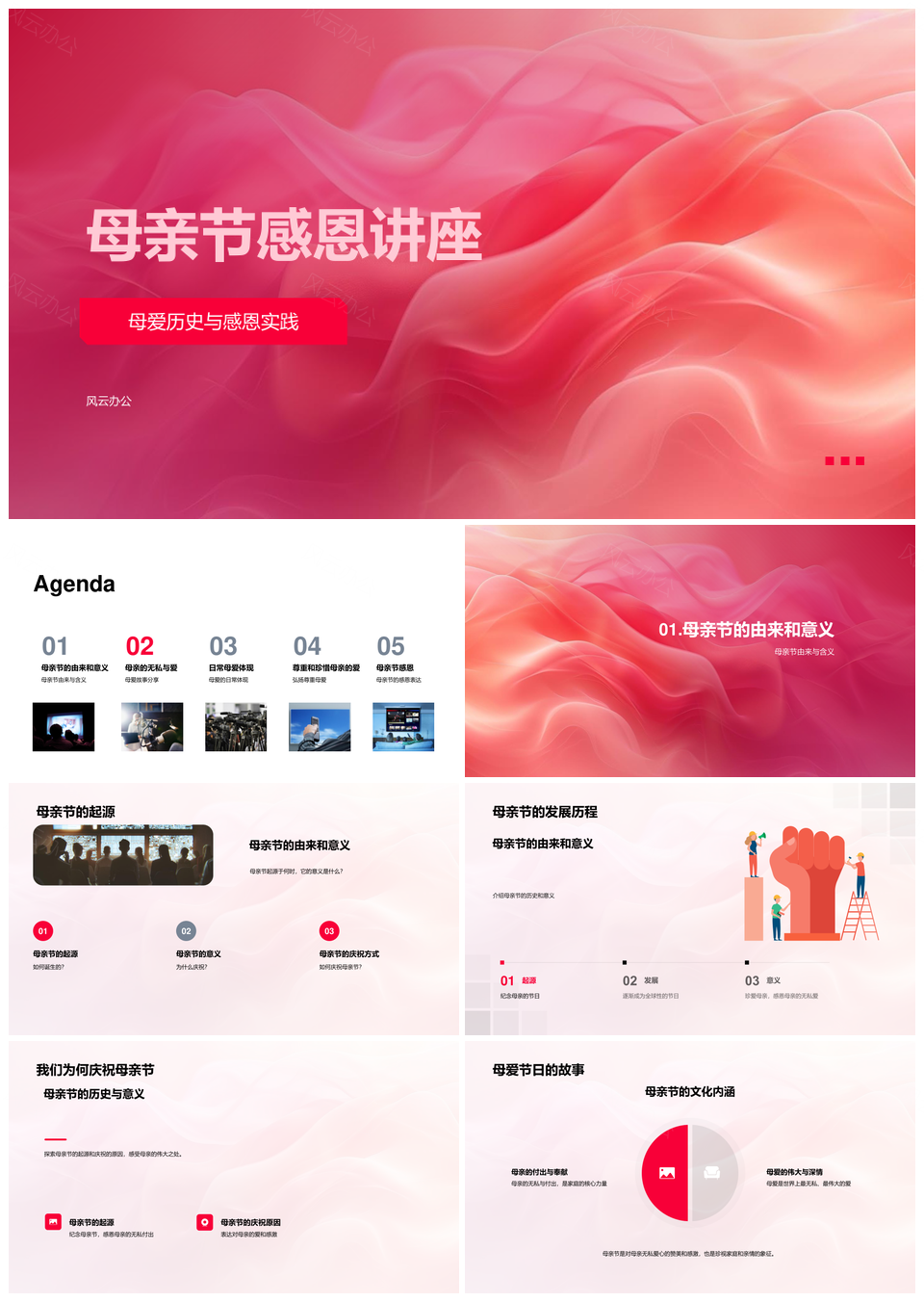 风云办公提供的母爱无私无条件母亲节感恩分享故事模板,下载格式为pptx,一共33页,作品中文字及图均可以修改和编辑,图片更改请在作品中右键图片并更换,文字修改请直接点击文字进行修改。