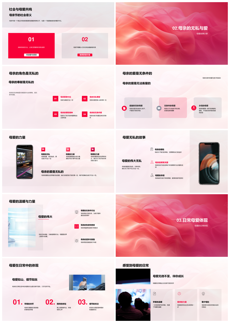 这是一张母爱无私无条件母亲节感恩分享故事模板,包含母爱、无私、无条件、母亲节、感恩、分享、故事等主题内容,也可用作母爱无私母亲节感恩、母亲节感恩分享故事、无私无条件母亲节感恩、母爱无私母亲节、母亲节感恩分享、感恩分享故事、无私无条件母亲节、母爱母亲节感恩、无条件母亲节感恩、母亲节分享故事、母爱无私、无私无条件、母亲节感恩、感恩分享、分享故事等PPT场景使用。