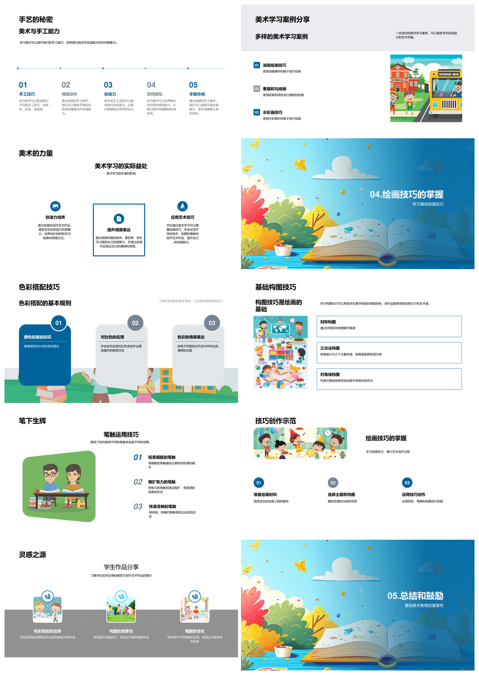 美术基础教学绘画技巧审美观察创新手工色彩构图PPT模板推荐