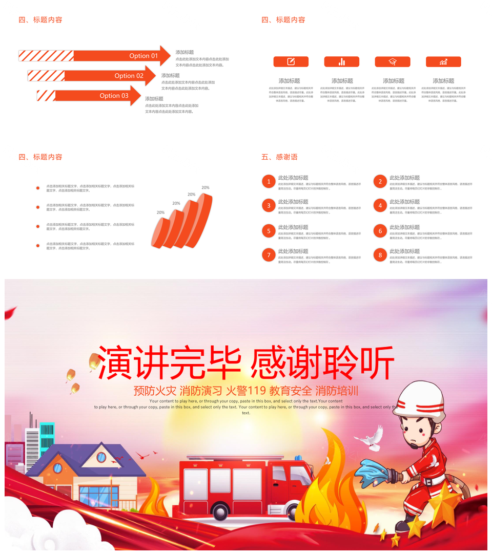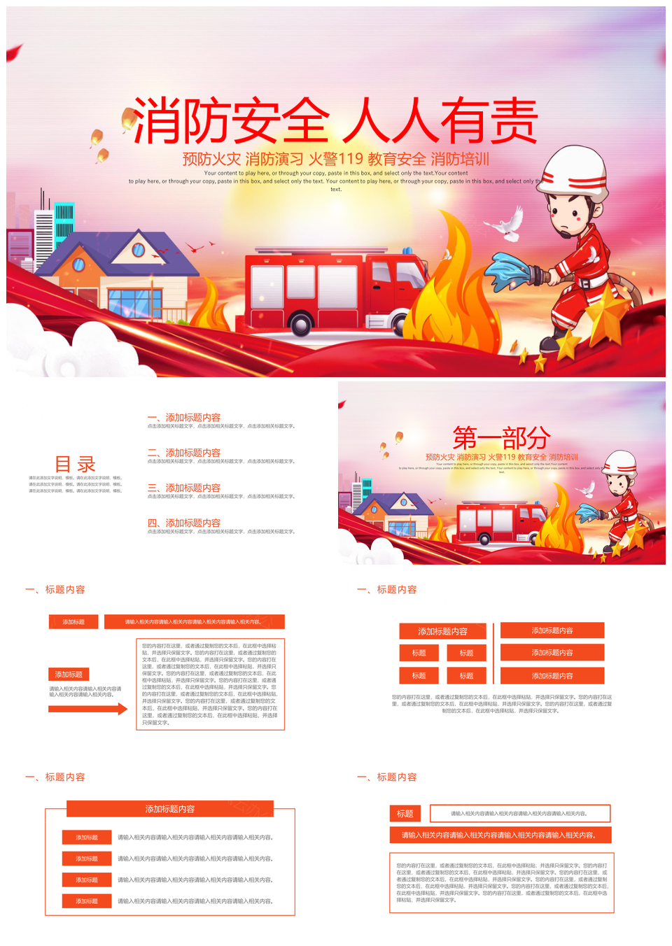 风云办公提供的红色关注消防安全知识培训宣传教育PPT模板,下载格式为pptx,一共23页,作品中文字及图均可以修改和编辑,图片更改请在作品中右键图片并更换,文字修改请直接点击文字进行修改。