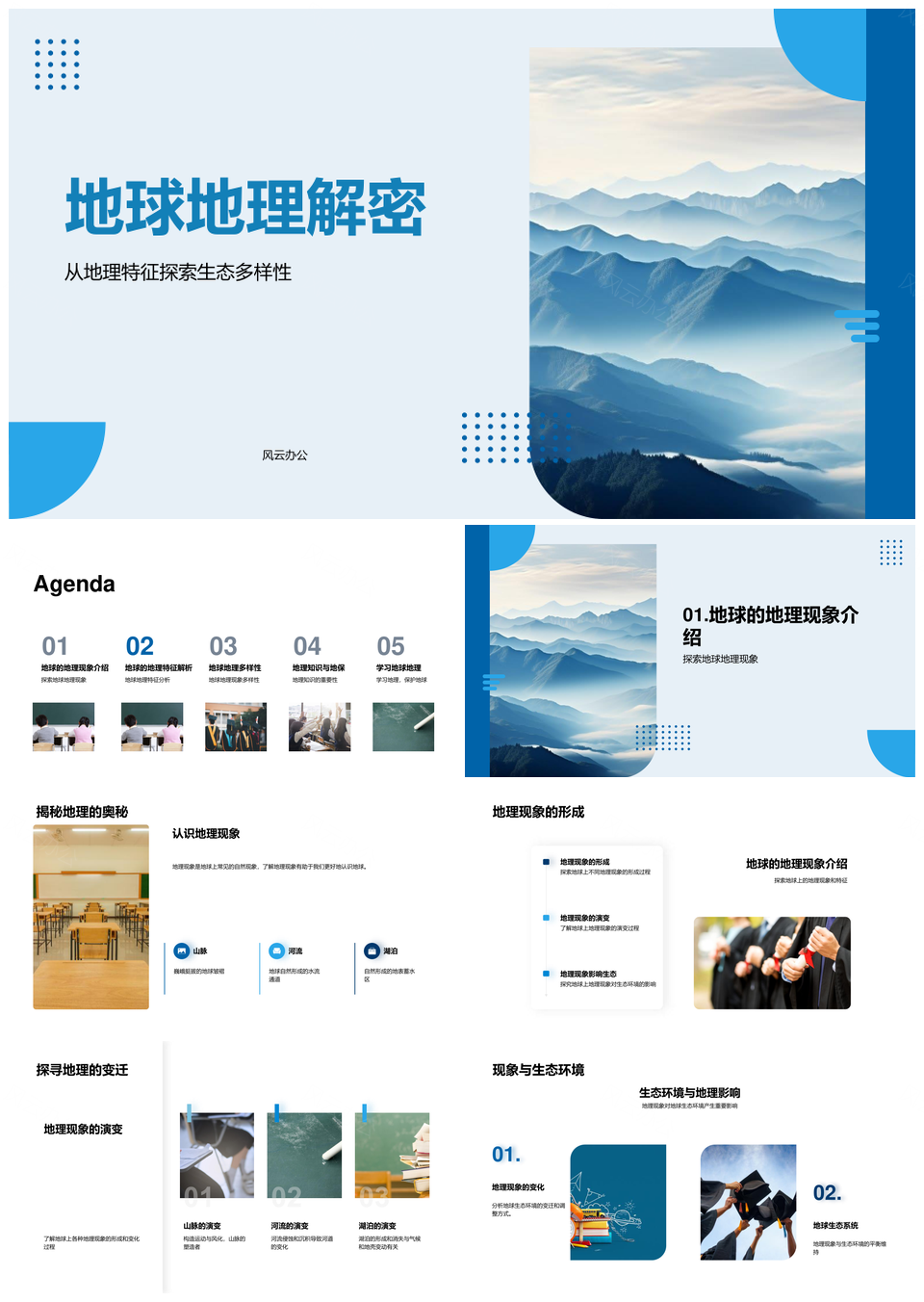 风云办公提供的地球地理特征与生态多样性保护探秘PPT模板,下载格式为pptx,一共28页,作品中文字及图均可以修改和编辑,图片更改请在作品中右键图片并更换,文字修改请直接点击文字进行修改。