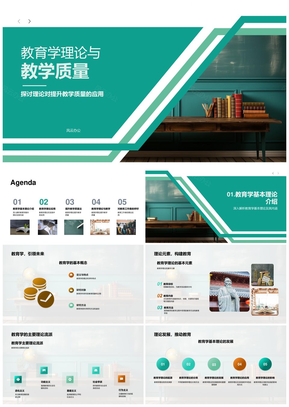 风云办公提供的教育学理论驱动教学质量提升方法PPT模板,下载格式为pptx,一共33页,作品中文字及图均可以修改和编辑,图片更改请在作品中右键图片并更换,文字修改请直接点击文字进行修改。