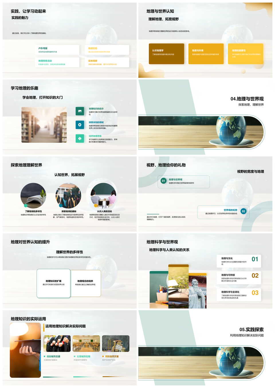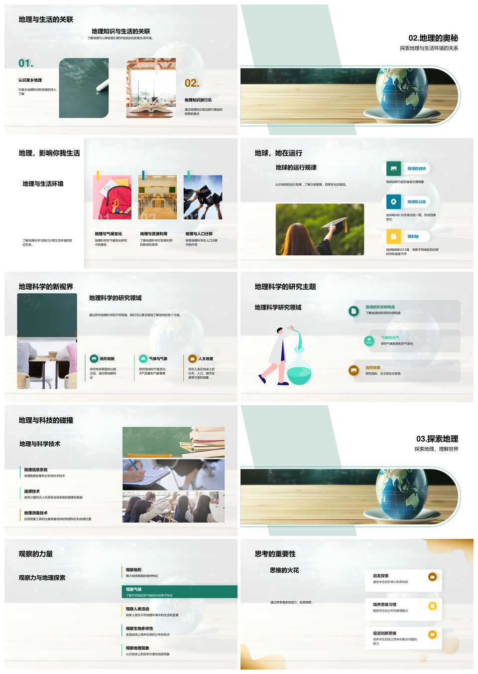 这是一张地理视窗科学探索理解世界小学教育地球仪PPT模板,包含地理视窗、科学探索、理解世界、小学教育、地球仪等主题内容,也可用作地理视窗科学探索、科学探索理解世界、理解世界小学教育、世界小学教育地球仪、地理视窗科学探索理解、视窗科学探索理解世界、科学探索理解世界小学、探索理解世界小学教育、理解世界小学教育地球仪、科学探索理解、探索理解世界、理解世界小学、世界小学教育、小学教育地球仪、地理视窗科学探索等PPT场景使用。 风云办公提供的地理视窗科学探索理解世界小学教育地球仪PPT模板,下载格式为pptx,一共33页,作品中文字及图均可以修改和编辑,图片更改请在作品中右键图片并更换,文字修改请直接点击文字进行修改。