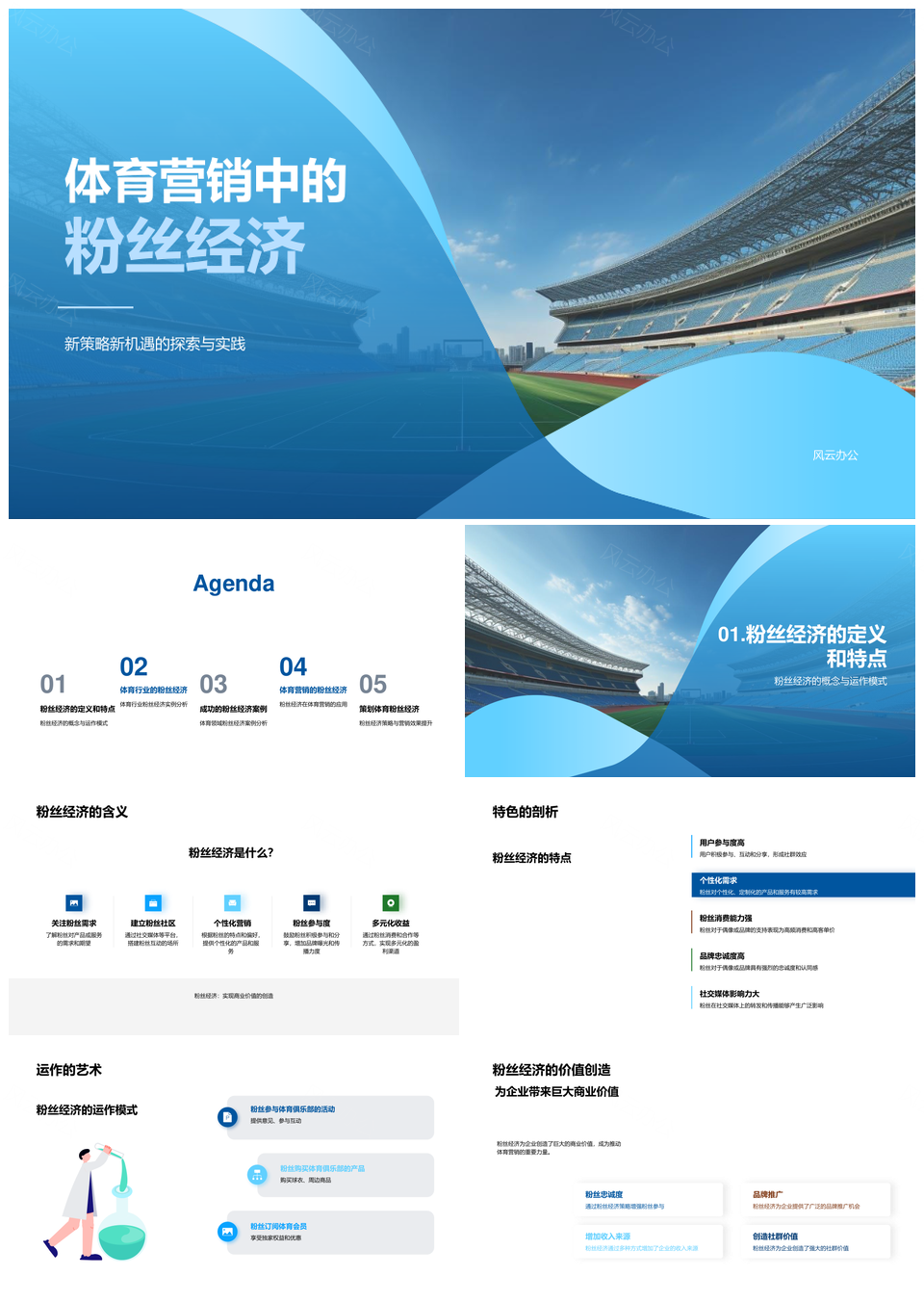 风云办公提供的体育营销粉丝经济新策略新机遇PPT模板,下载格式为pptx,一共26页,作品中文字及图均可以修改和编辑,图片更改请在作品中右键图片并更换,文字修改请直接点击文字进行修改。