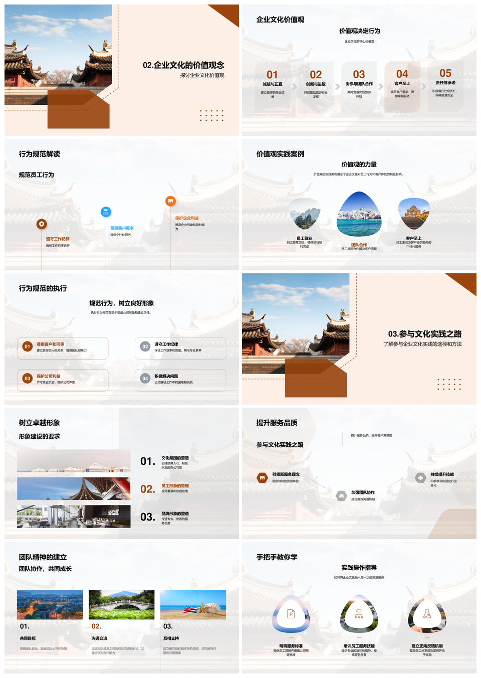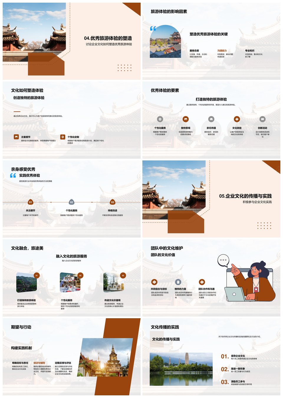风云办公提供的旅游企业文化力量提升服务与古建体验PPT模板,下载格式为pptx,一共28页,作品中文字及图均可以修改和编辑,图片更改请在作品中右键图片并更换,文字修改请直接点击文字进行修改。