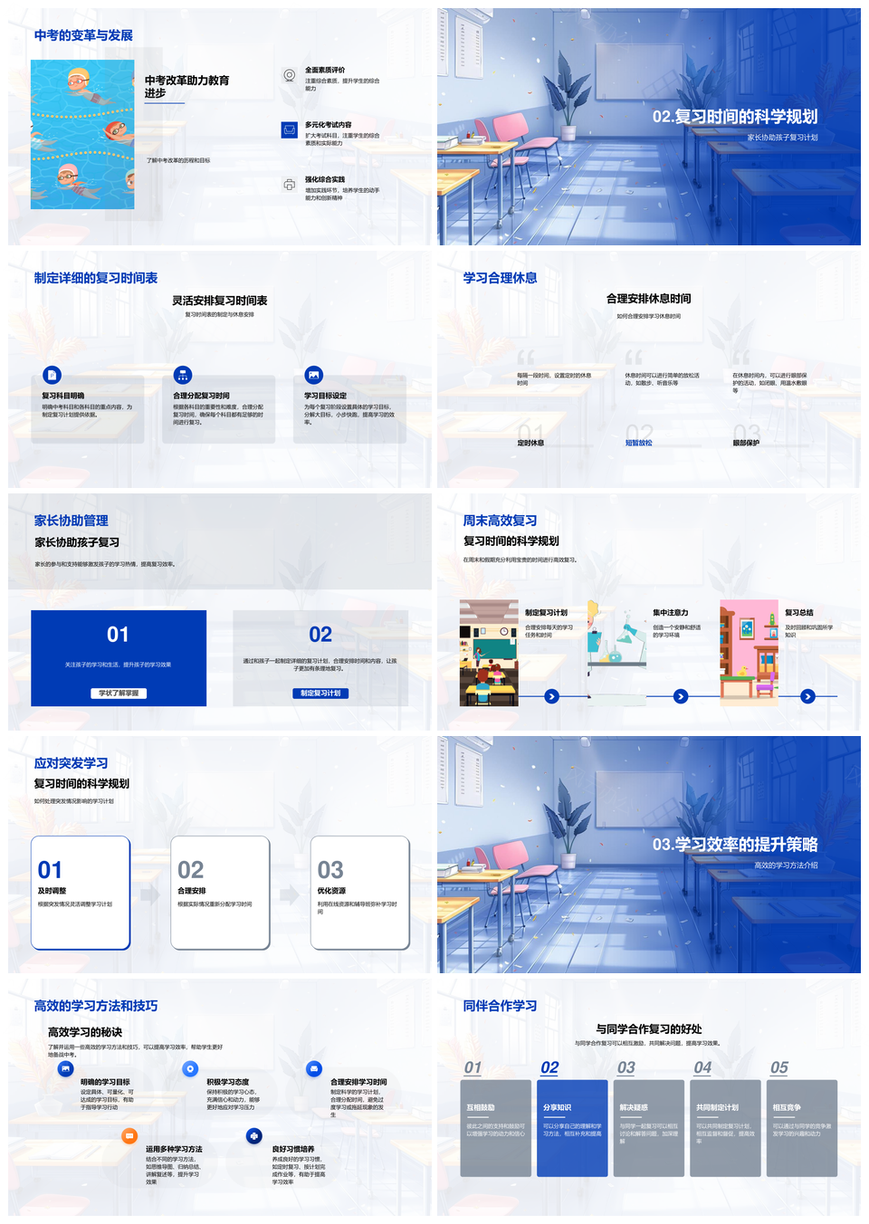 中考备考复习策略科目时间家长协助高效合作学习休息PPT模板推荐