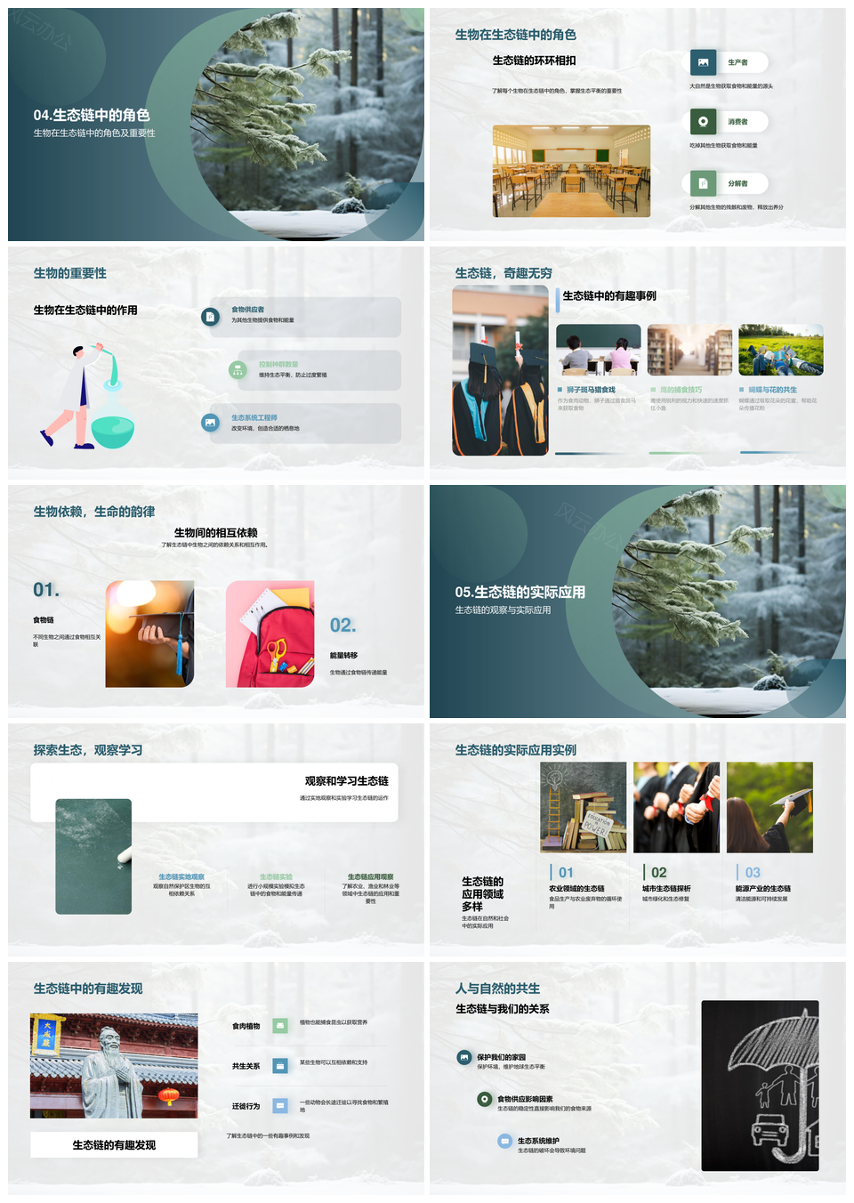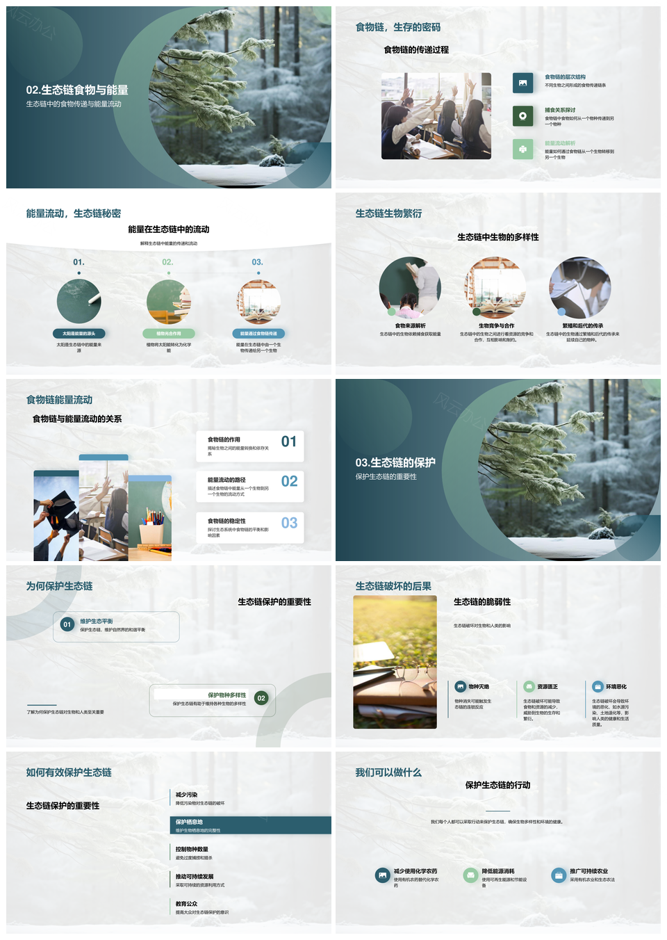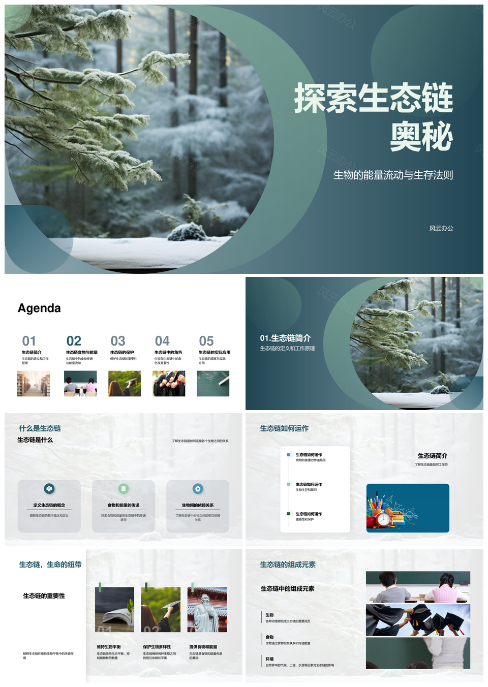 风云办公提供的森林生态链能量流动与生存繁衍法则PPT模板,下载格式为pptx,一共28页,作品中文字及图均可以修改和编辑,图片更改请在作品中右键图片并更换,文字修改请直接点击文字进行修改。