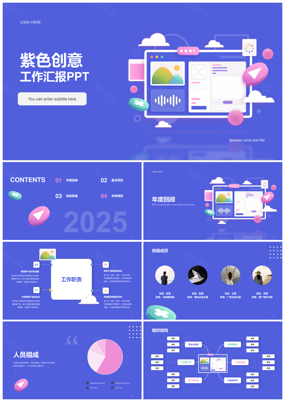 风云办公提供的2025紫色创意轻拟态工作汇报PPT模板,下载格式为pptx,一共18页,作品中文字及图均可以修改和编辑,图片更改请在作品中右键图片并更换,文字修改请直接点击文字进行修改。