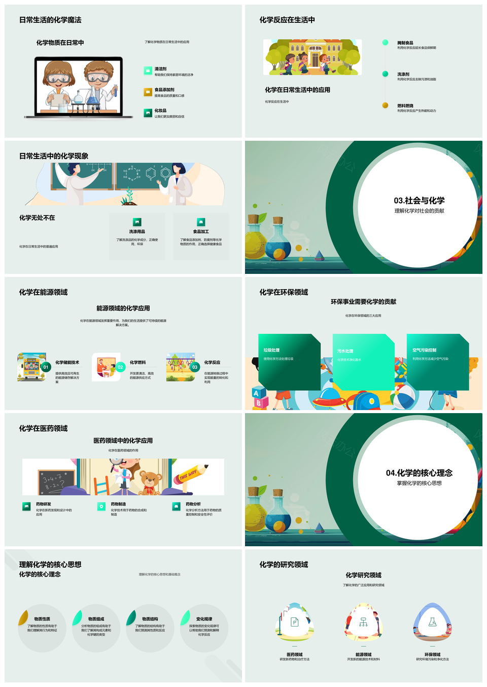 风云办公提供的生活化学应用物质反应与基础规律PPT模板,下载格式为pptx,一共23页,作品中文字及图均可以修改和编辑,图片更改请在作品中右键图片并更换,文字修改请直接点击文字进行修改。