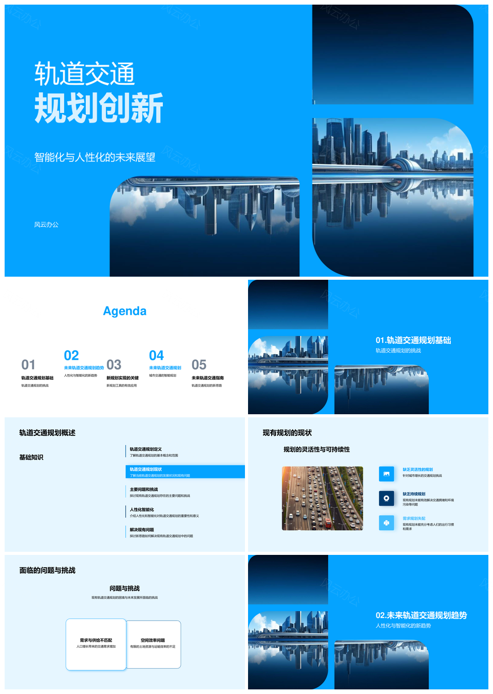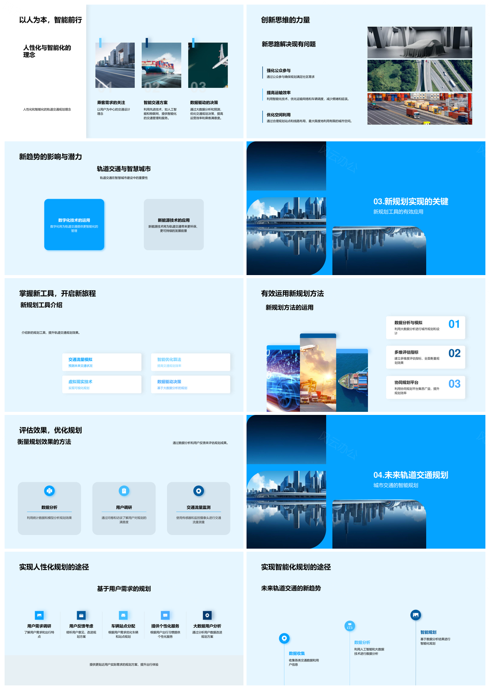 风云办公提供的智能人性化轨道交通规划新趋势方法PPT模板,下载格式为pptx,一共23页,作品中文字及图均可以修改和编辑,图片更改请在作品中右键图片并更换,文字修改请直接点击文字进行修改。