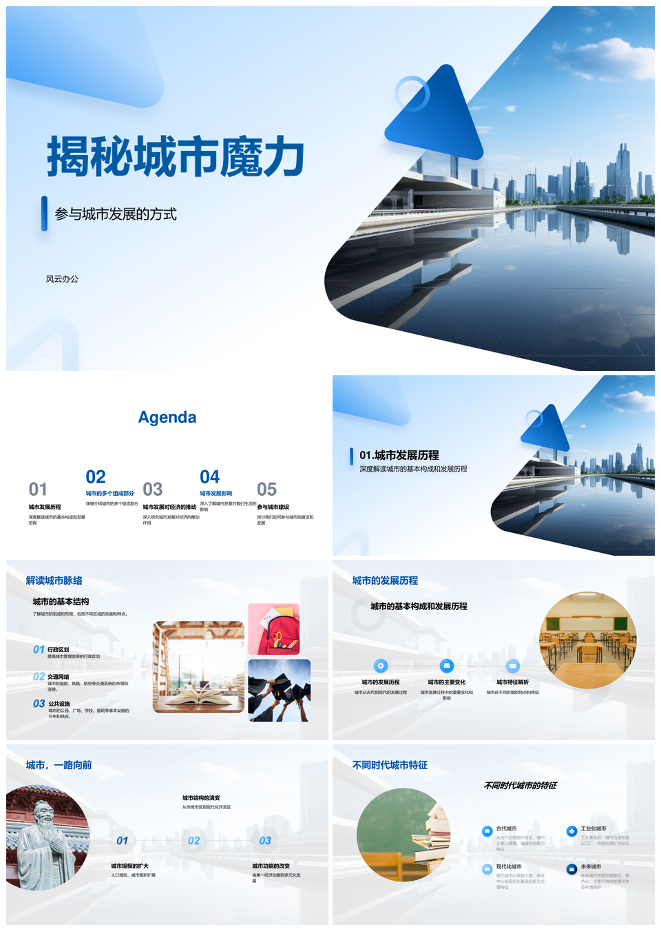 风云办公提供的城市发展历程结构驱动力与功能区探秘PPT模板,下载格式为pptx,一共29页,作品中文字及图均可以修改和编辑,图片更改请在作品中右键图片并更换,文字修改请直接点击文字进行修改。