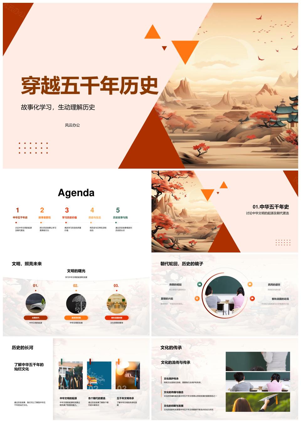 这是一张穿越五千年故事画卷探文明起源朝代更迭PPT模板,包含穿越、五千年、故事画卷、探、文明起源、朝代更迭等主题内容,也可用作穿越五千年故事画卷、五千年故事画卷探文明、故事画卷探文明起源、画卷探文明起源朝代更迭、穿越五千年故事探文明、五千年故事探文明起源、故事探文明起源朝代、五千年画卷探文明起源、故事画卷探起源朝代、穿越五千年文明起源朝代、五千年文明起源朝代更迭、画卷文明起源朝代更迭、穿越故事文明起源朝代、五千年探文明起源朝代、故事探起源朝代更迭等PPT场景使用。 风云办公提供的穿越五千年故事画卷探文明起源朝代更迭PPT模板,下载格式为pptx,一共33页,作品中文字及图均可以修改和编辑,图片更改请在作品中右键图片并更换,文字修改请直接点击文字进行修改。