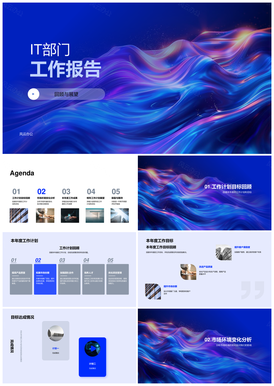 IT部门工作报告工作计划目标市场策略调整员工表现新项目PPT模板推荐