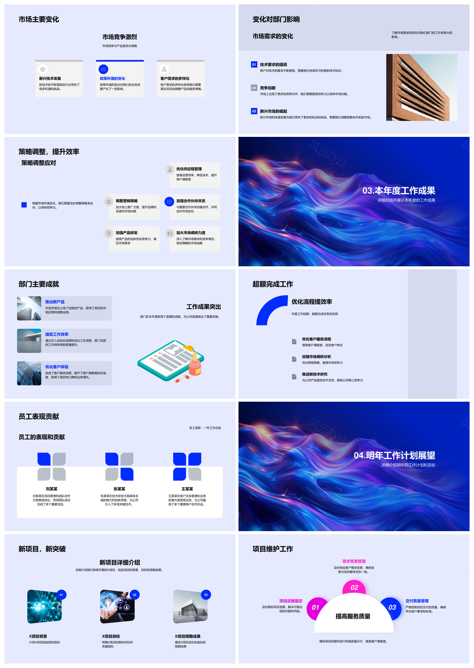 这是一张IT部门工作报告工作计划目标市场策略调整员工表现新项目PPT模板,包含IT部门、工作报告、工作计划、目标市场、策略调整、员工表现、新项目等主题内容,也可用作IT部门工作报告工作计划目标、工作报告工作计划目标市场策略、工作计划目标市场策略调整、目标市场策略调整员工表现、市场策略调整员工表现新项目、IT部门工作报告工作计划、工作报告工作计划目标、工作计划目标市场策略、目标市场策略调整、市场策略调整员工表现、调整员工表现新项目、IT部门工作报告、工作报告工作计划、工作计划目标、目标市场策略等PPT场景使用。 风云办公提供的IT部门工作报告工作计划目标市场策略调整员工表现新项目PPT模板,下载格式为pptx,一共23页,作品中文字及图均可以修改和编辑,图片更改请在作品中右键图片并更换,文字修改请直接点击文字进行修改。
