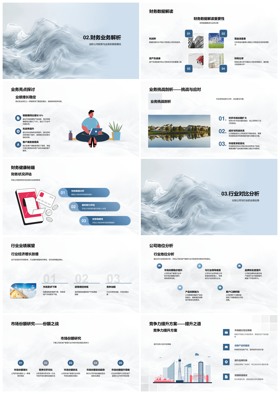 这是一张季度房产业绩经济解析行业对比优化策略汇报PPT模板,包含季度、房产、业绩、经济、解析、行业、对比、优化、策略、汇报等主题内容,也可用作季度房产业绩经济解析行业对比、房产业绩经济解析行业对比优化策略、经济解析行业对比优化策略汇报、季度房产业绩经济解析、房产业绩经济解析行业对比、经济解析行业对比优化策略、行业对比优化策略汇报、季度房产业绩、房产业绩经济解析、经济解析行业对比、行业对比优化策略、优化策略汇报、经济解析优化策略、行业对比汇报、房产业绩优化策略等PPT场景使用。 风云办公提供的季度房产业绩经济解析行业对比优化策略汇报PPT模板,下载格式为pptx,一共28页,作品中文字及图均可以修改和编辑,图片更改请在作品中右键图片并更换,文字修改请直接点击文字进行修改。