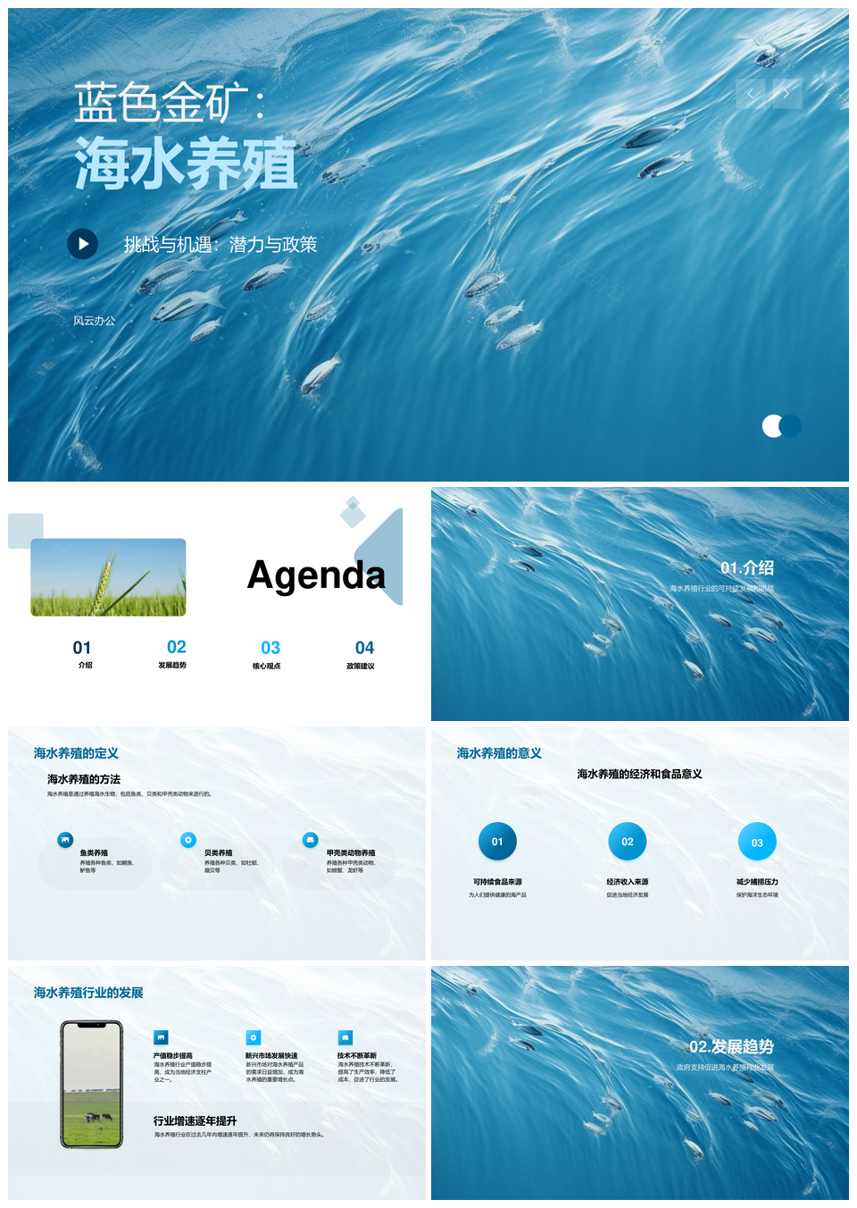 海水养殖发展趋势机遇挑战与海洋经济食品行业PPT模板