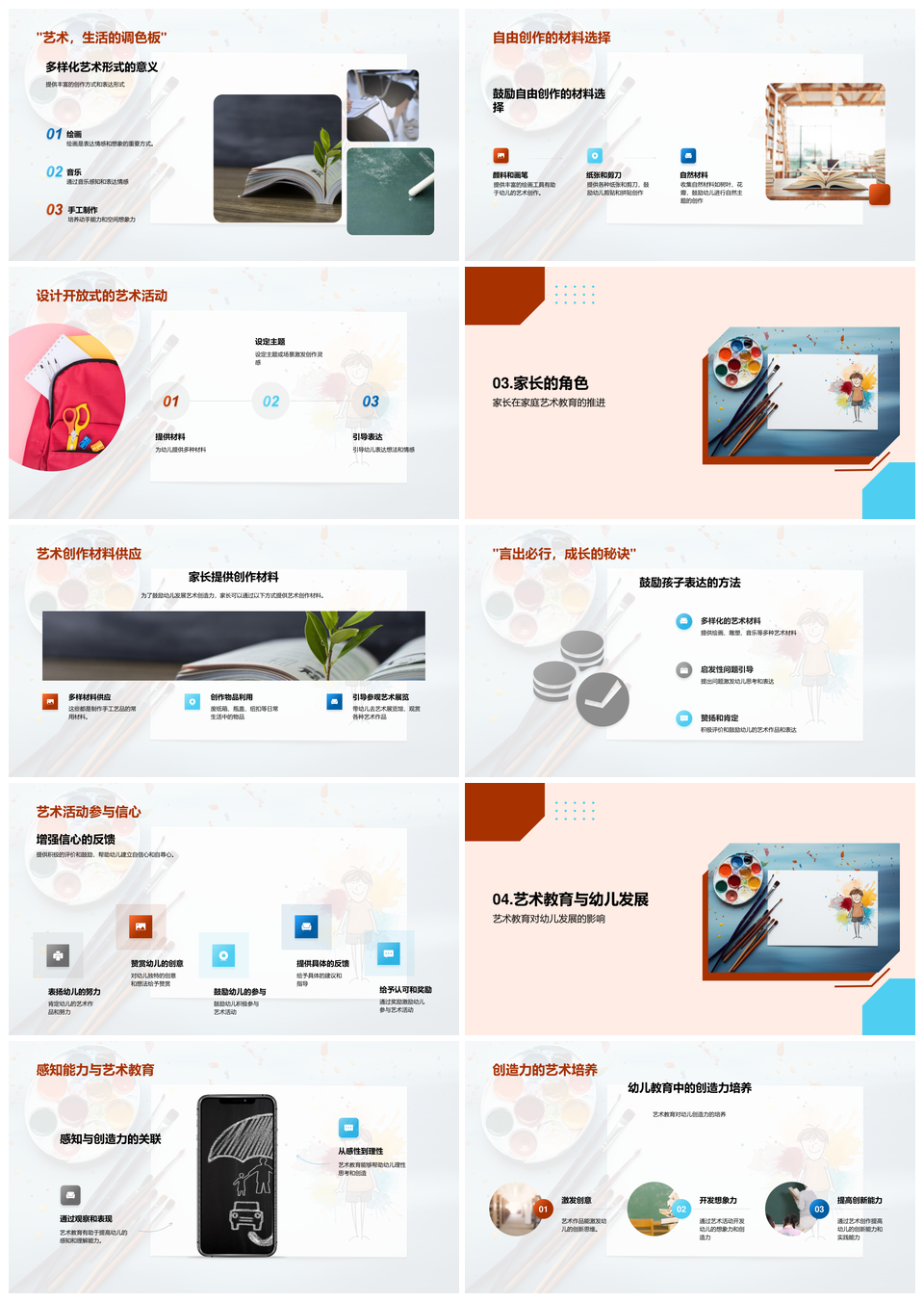 幼儿艺术教育创新设计家长引导全面发展PPT模板推荐