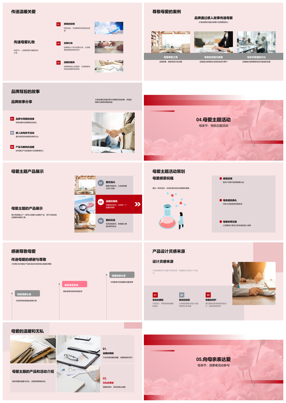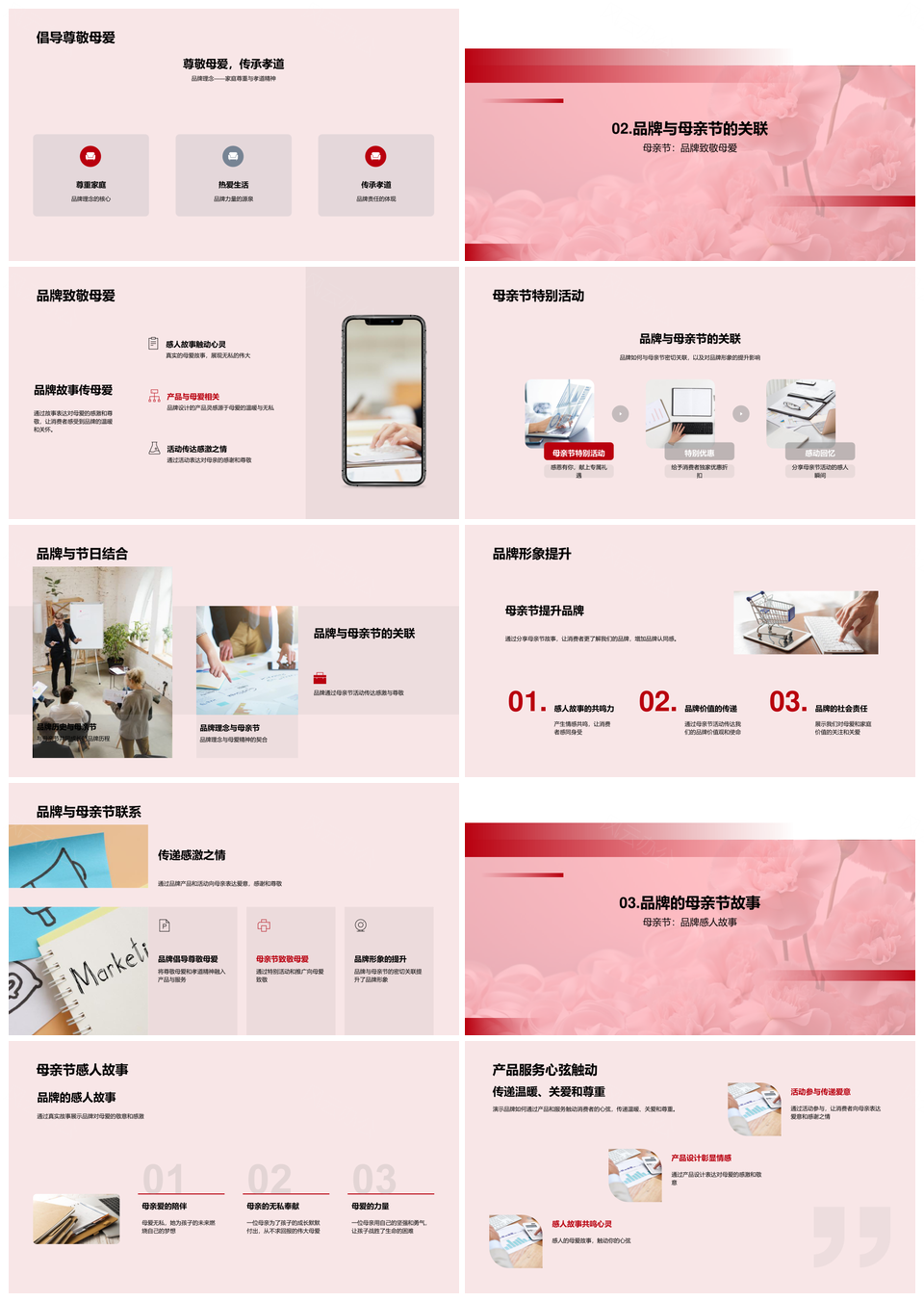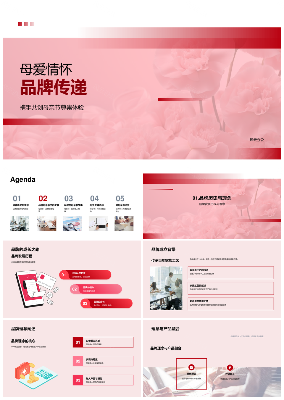风云办公提供的母爱品牌母亲节粉康乃馨传承故事PPT模板,下载格式为pptx,一共33页,作品中文字及图均可以修改和编辑,图片更改请在作品中右键图片并更换,文字修改请直接点击文字进行修改。
