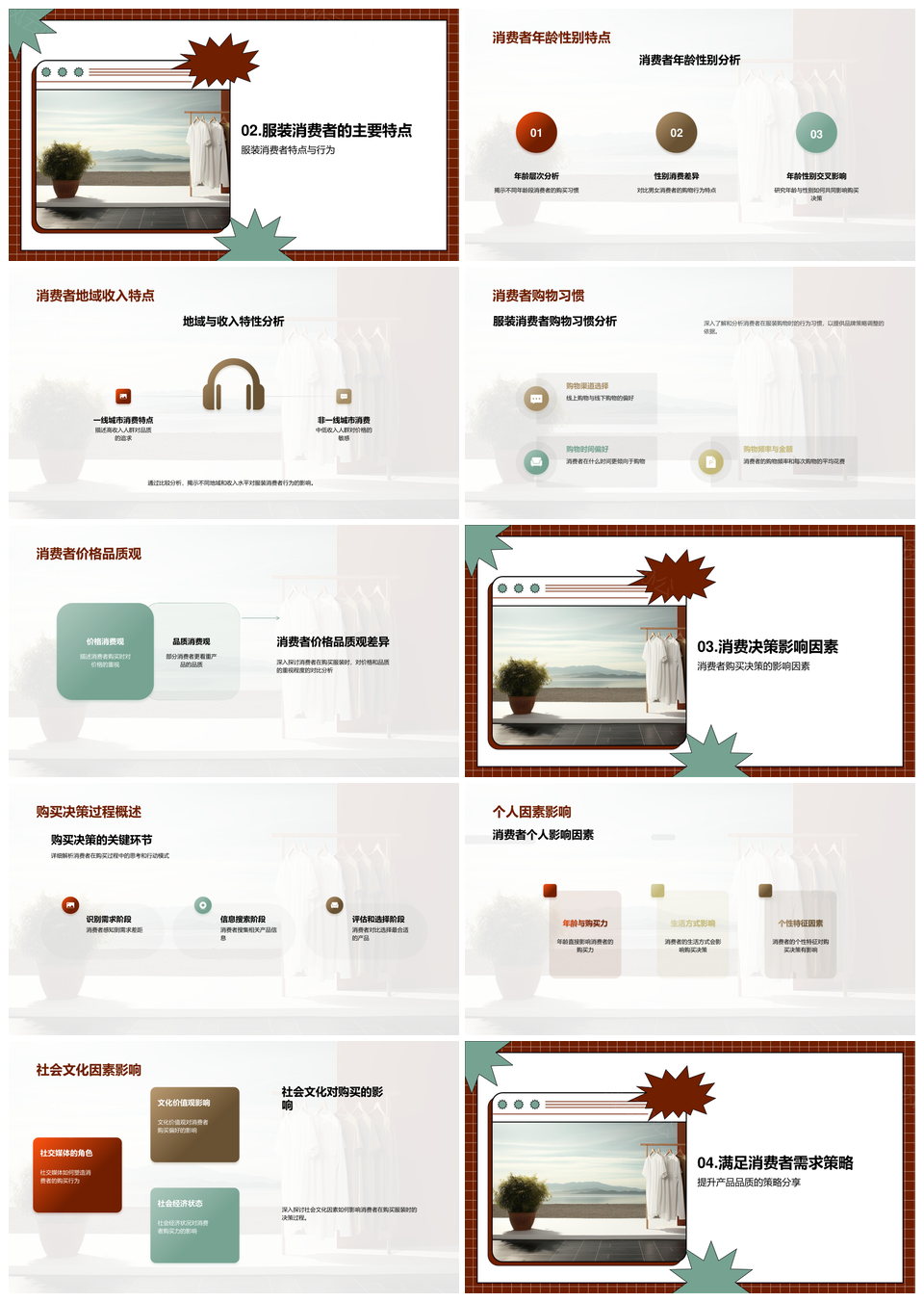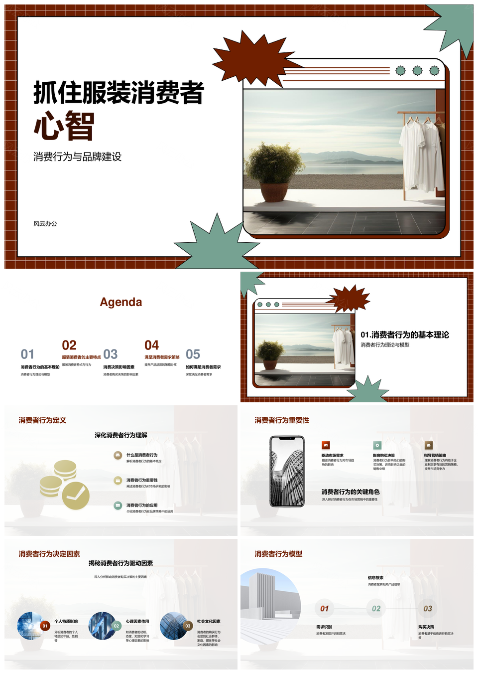 这是一张服装消费者心智与品牌建设消费行为模型PPT模板,包含服装消费者、心智、品牌、建设、消费行为、模型等主题内容,也可用作服装消费者心智品牌建设、消费者心智品牌建设消费行为、心智品牌建设消费行为模型、服装消费者心智、消费者心智品牌建设、心智品牌建设消费行为、品牌建设消费行为模型、服装消费者、消费者心智、心智品牌建设、品牌建设消费行为、消费行为模型、服装品牌建设、服装消费行为、品牌建设模型等PPT场景使用。 风云办公提供的服装消费者心智与品牌建设消费行为模型PPT模板,下载格式为pptx,一共25页,作品中文字及图均可以修改和编辑,图片更改请在作品中右键图片并更换,文字修改请直接点击文字进行修改。