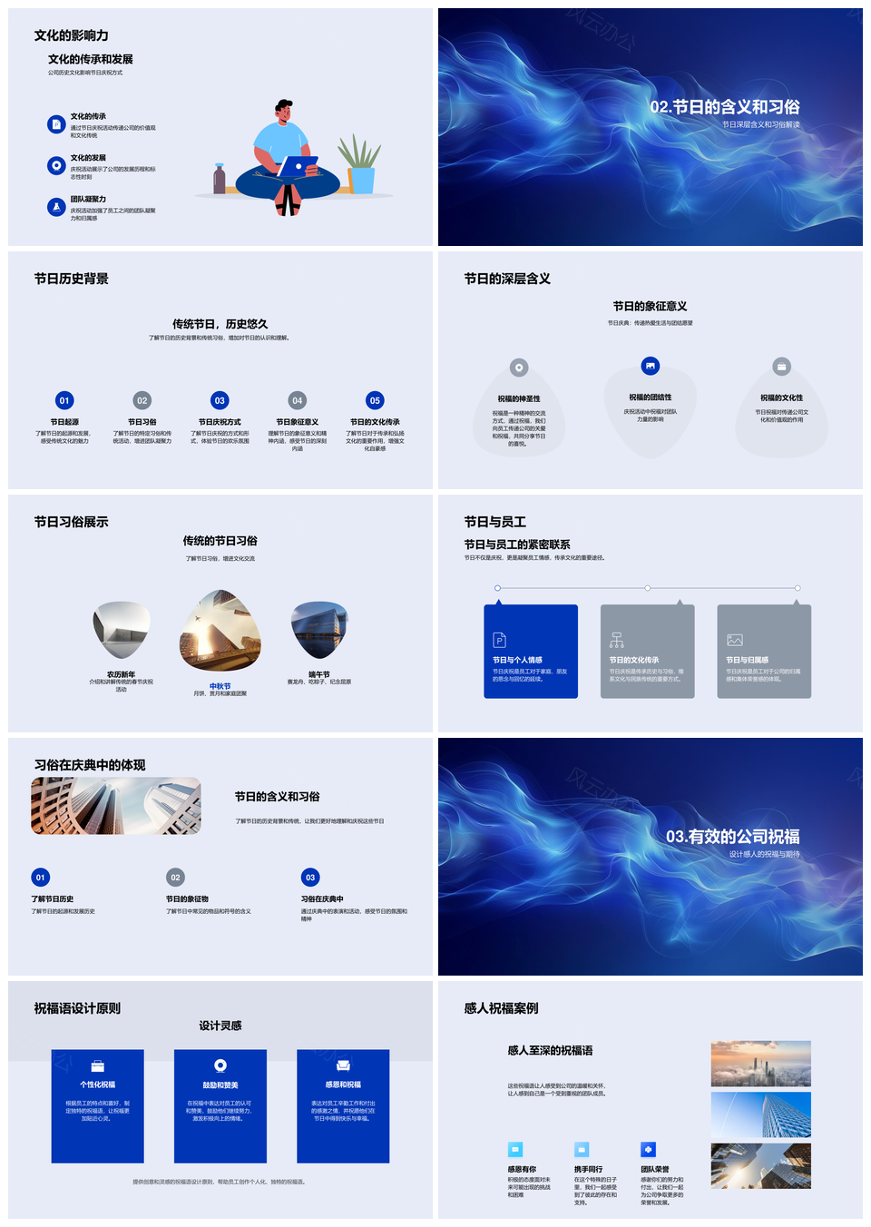 这是一张2025公司文化传承节日庆典归属祝福PPT模板,包含2025公司、文化传承、节日庆典、归属、祝福等主题内容,也可用作2025公司文化传承节日庆典归属祝福、公司文化传承节日庆典、公司文化传承节日归属、公司文化传承归属祝福、公司文化传承庆典归属、文化传承节日庆典归属、传承节日庆典归属祝福、公司文化传承节日、文化传承节日庆典、传承节日庆典归属、节日庆典归属祝福、公司文化传承、文化传承节日、传承节日庆典、节日庆典归属等PPT场景使用。 风云办公提供的2025公司文化传承节日庆典归属祝福PPT模板,下载格式为pptx,一共33页,作品中文字及图均可以修改和编辑,图片更改请在作品中右键图片并更换,文字修改请直接点击文字进行修改。