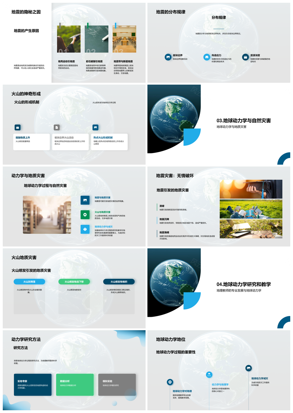 风云办公提供的地球板块运动与地震火山地质灾害PPT模板,下载格式为pptx,一共23页,作品中文字及图均可以修改和编辑,图片更改请在作品中右键图片并更换,文字修改请直接点击文字进行修改。