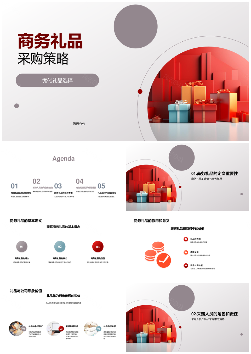 风云办公提供的商务礼品采购选控预算展公司形象PPT模板,下载格式为pptx,一共24页,作品中文字及图均可以修改和编辑,图片更改请在作品中右键图片并更换,文字修改请直接点击文字进行修改。