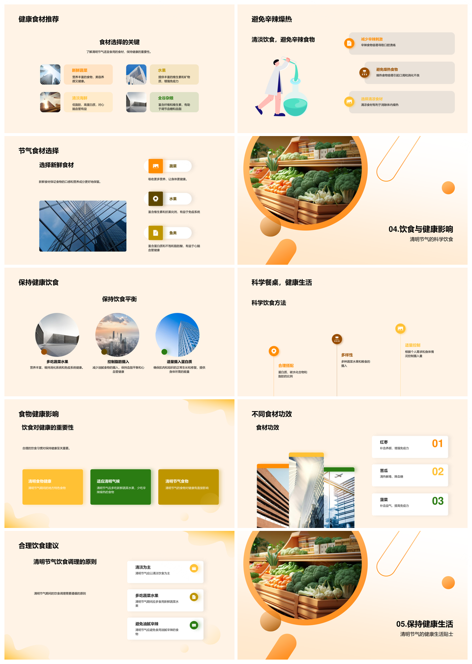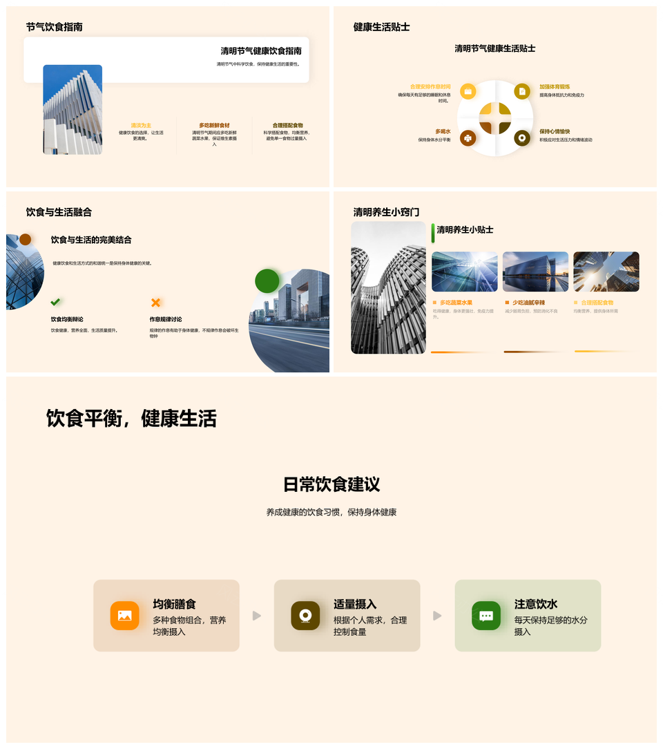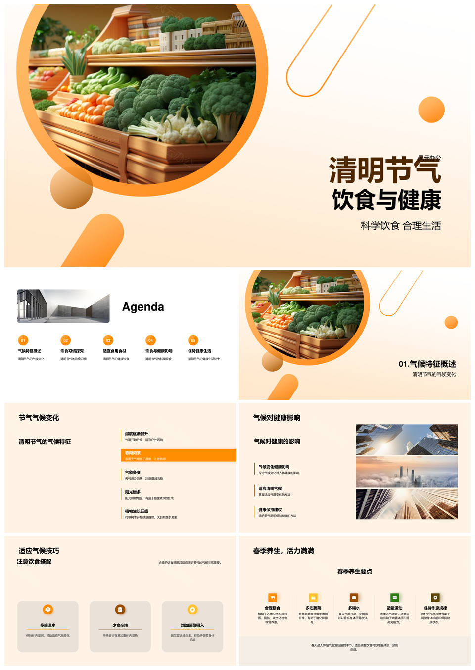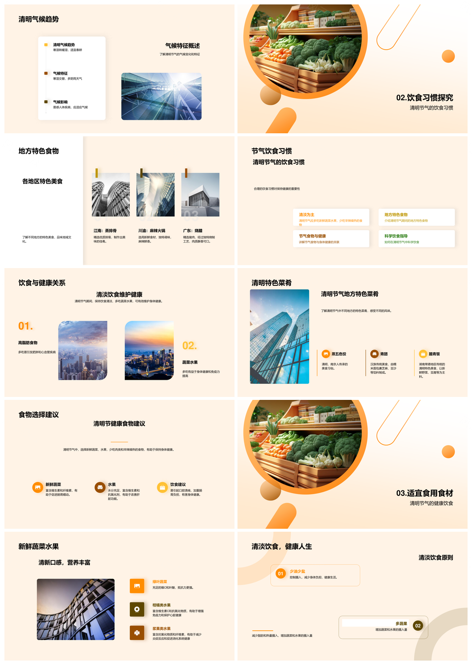 这是一张清明节气科学饮食健康生活地方特色蔬果PPT模板,包含清明节气、科学饮食、健康生活、地方特色、蔬果等主题内容,也可用作清明节气科学饮食、科学饮食健康生活、健康生活地方特色、清明节气健康生活、地方特色蔬果、饮食健康生活、健康生活地方、清明节气地方、科学饮食健康、健康地方特色、清明节气科学、清明健康生活、科学健康生活、清明饮食健康、饮食地方特色等PPT场景使用。 风云办公提供的清明节气科学饮食健康生活地方特色蔬果PPT模板,下载格式为pptx,一共33页,作品中文字及图均可以修改和编辑,图片更改请在作品中右键图片并更换,文字修改请直接点击文字进行修改。