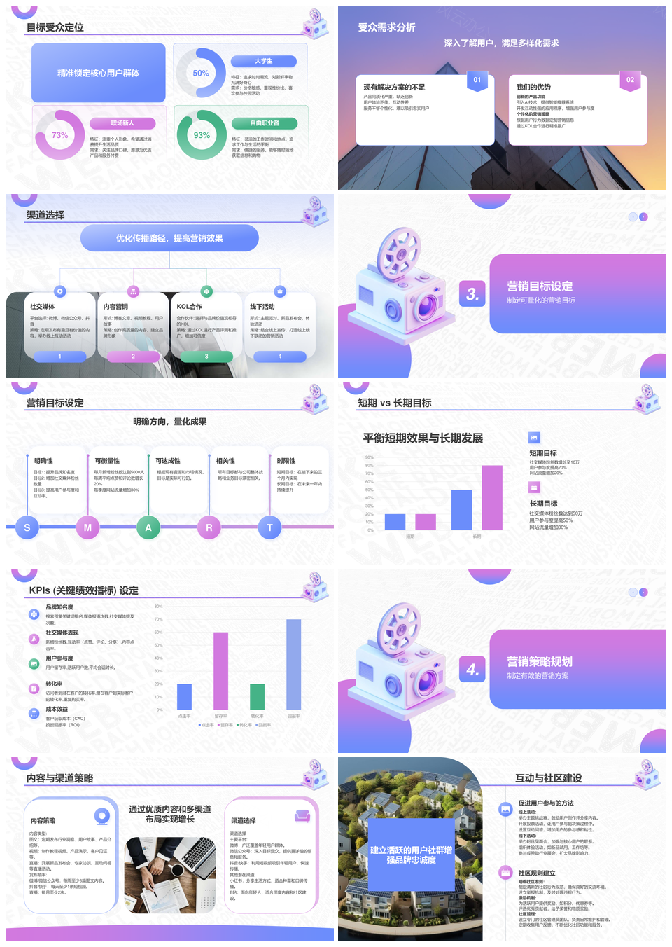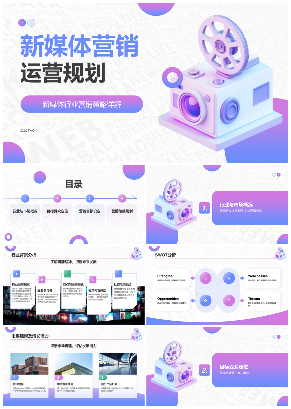 新媒体营销运营规划行业市场分析目标受众营销目标PPT模板推荐