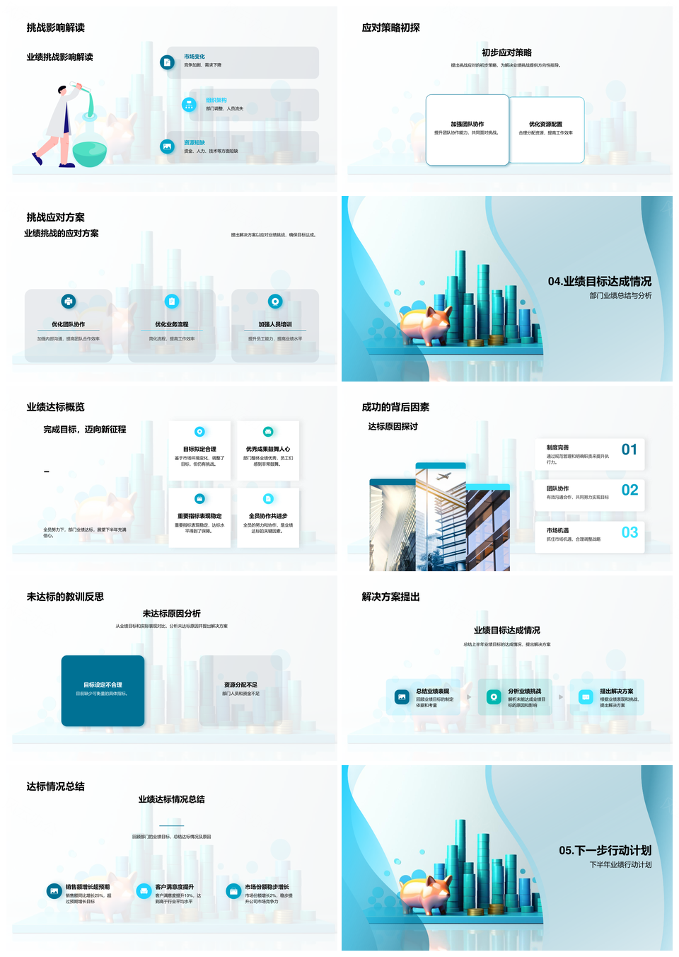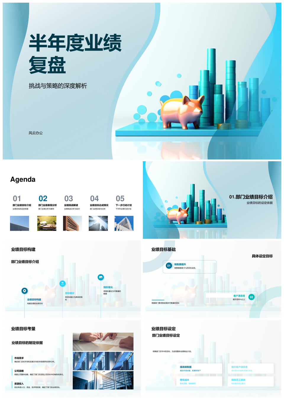 咨询部门半年度业绩复盘达标挑战分析会PPT模板推荐