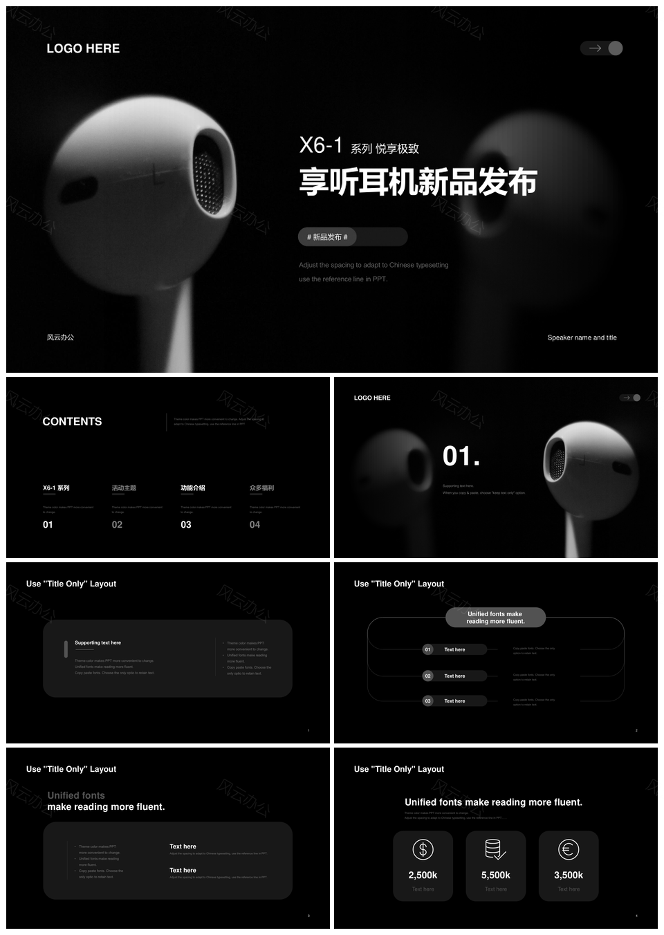 风云办公提供的黑色商务质感耳机数据发布四年平PPT模板,下载格式为pptx,一共16页,作品中文字及图均可以修改和编辑,图片更改请在作品中右键图片并更换,文字修改请直接点击文字进行修改。
