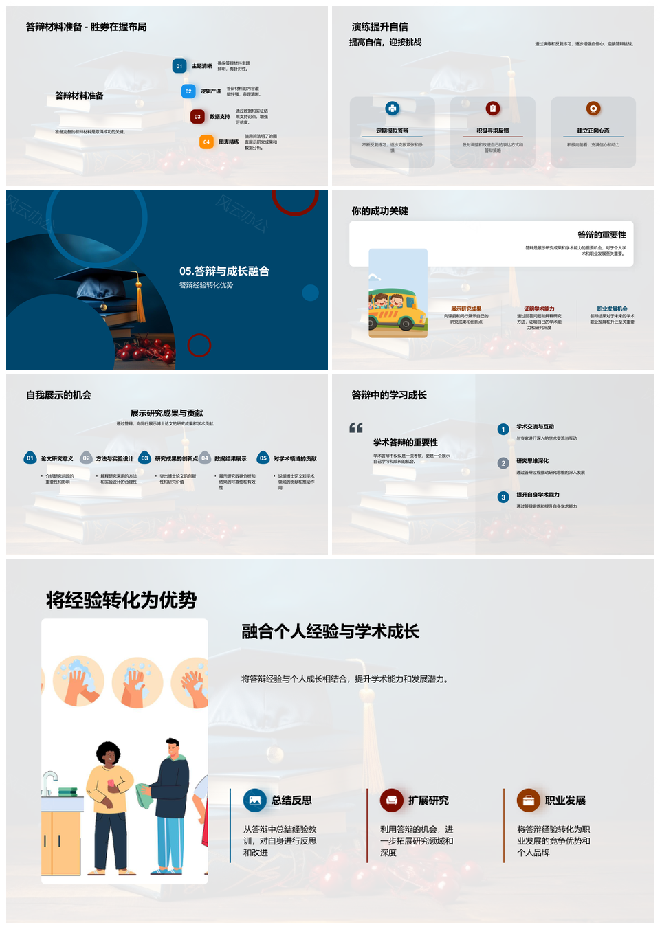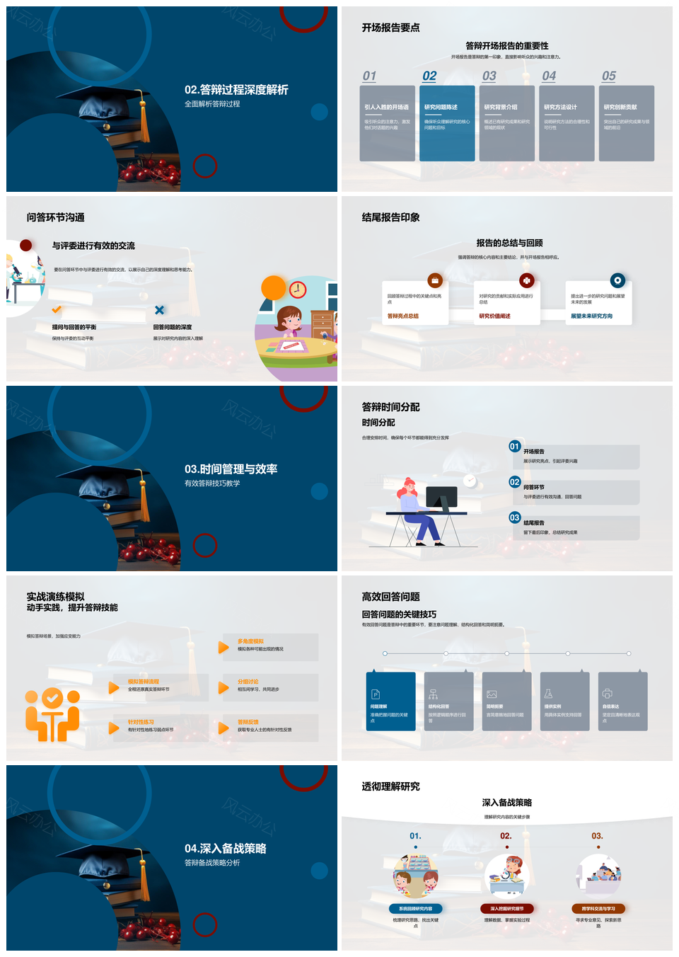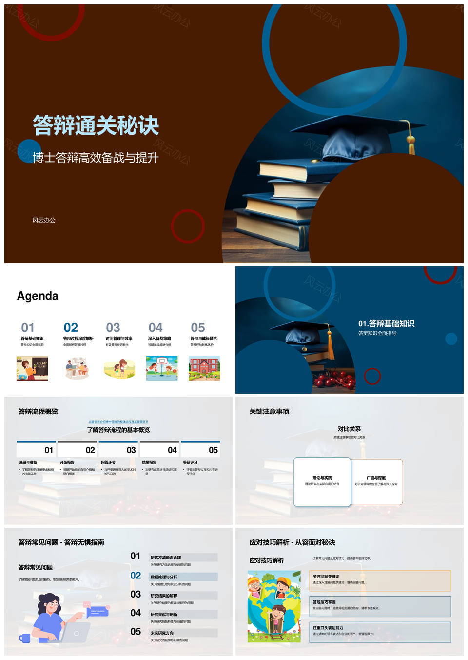 风云办公提供的答辩流程通关秘诀关键注意事项毕业帽PPT模板,下载格式为pptx,一共25页,作品中文字及图均可以修改和编辑,图片更改请在作品中右键图片并更换,文字修改请直接点击文字进行修改。
