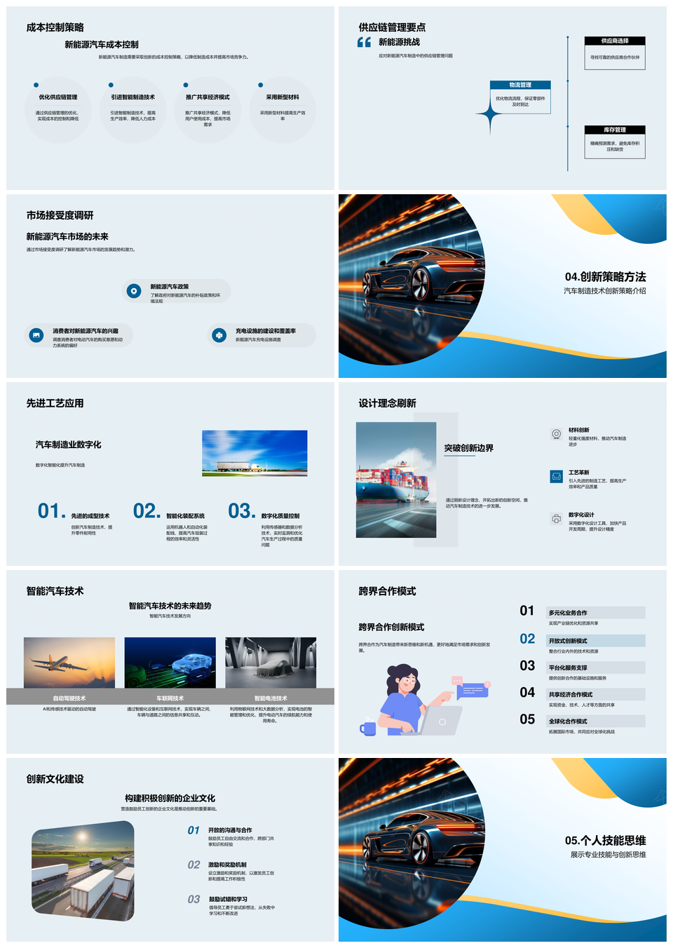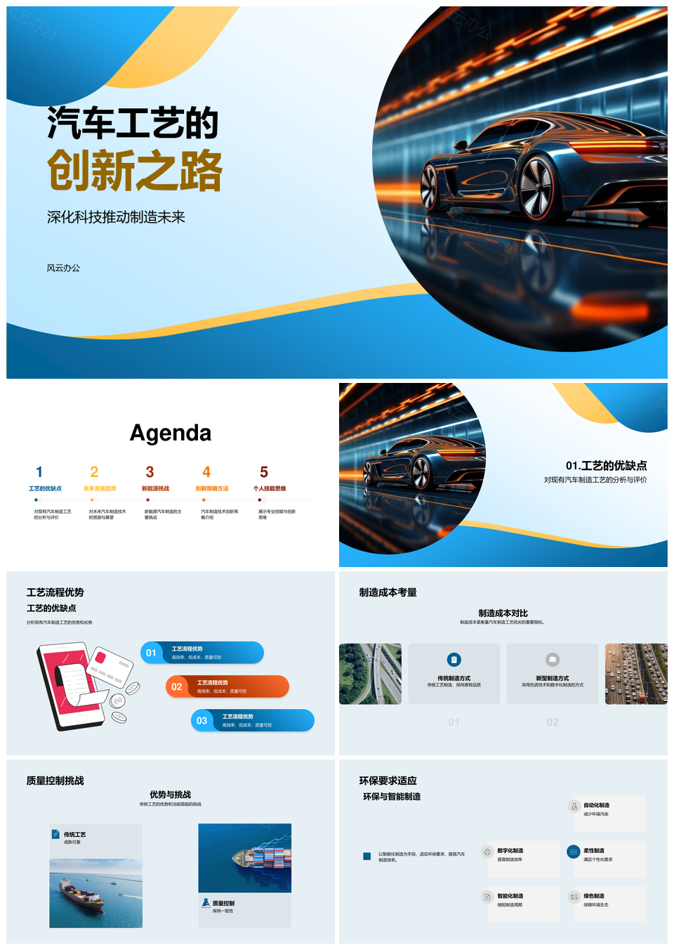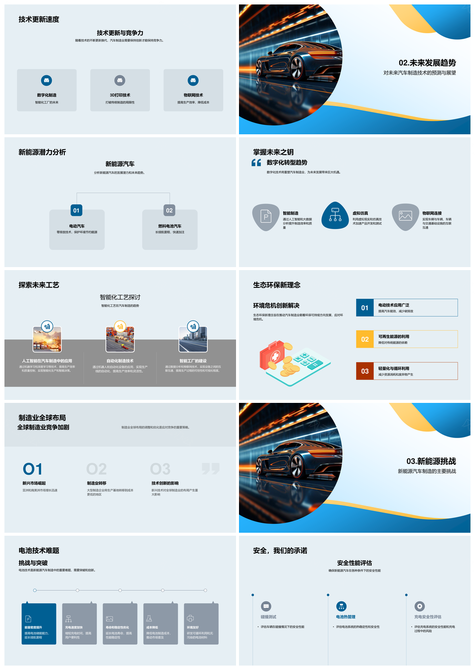 风云办公提供的新能源汽车智造与电池技术创新PPT模板,下载格式为pptx,一共33页,作品中文字及图均可以修改和编辑,图片更改请在作品中右键图片并更换,文字修改请直接点击文字进行修改。