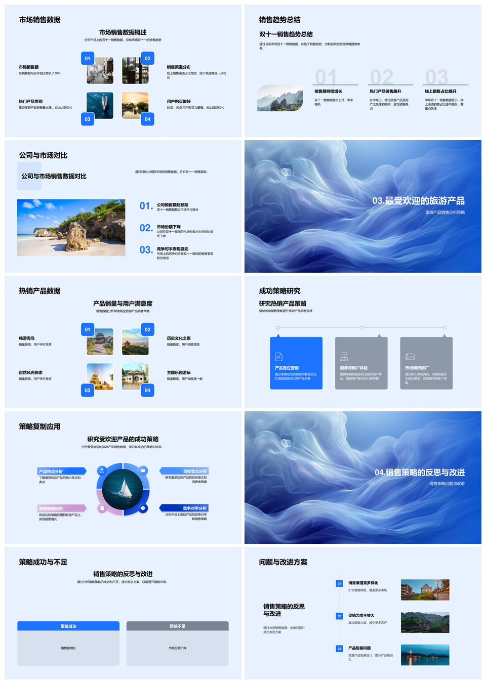 这是一张双十一旅游销售业绩优化双十二营销策划PPT模板,包含双十一、旅游、销售、业绩、优化、双十二、营销、策划等主题内容,也可用作双十一旅游销售业绩优化双十二营销策划、双十一旅游销售业绩优化、旅游销售业绩优化双十二、销售业绩优化双十二营销、优化双十二营销策划、双十一旅游销售业绩、旅游销售业绩优化、销售业绩优化双十二、优化双十二营销、双十二营销策划、双十一旅游销售、旅游销售业绩、销售业绩优化、双十一旅游、优化双十二等PPT场景使用。 风云办公提供的双十一旅游销售业绩优化双十二营销策划PPT模板,下载格式为pptx,一共23页,作品中文字及图均可以修改和编辑,图片更改请在作品中右键图片并更换,文字修改请直接点击文字进行修改。