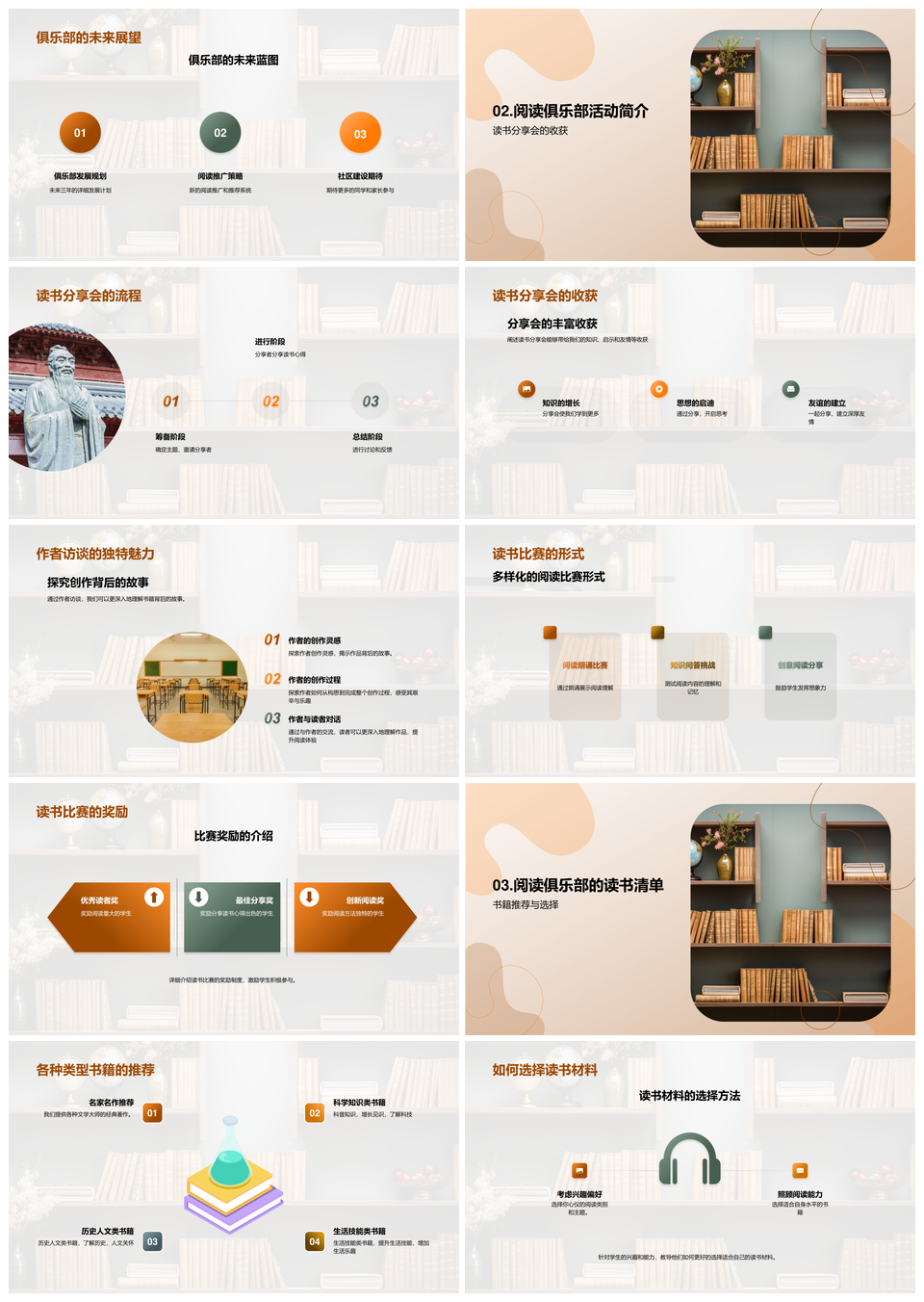 阅读俱乐部书海分享赛访谈荐单架PPT模板