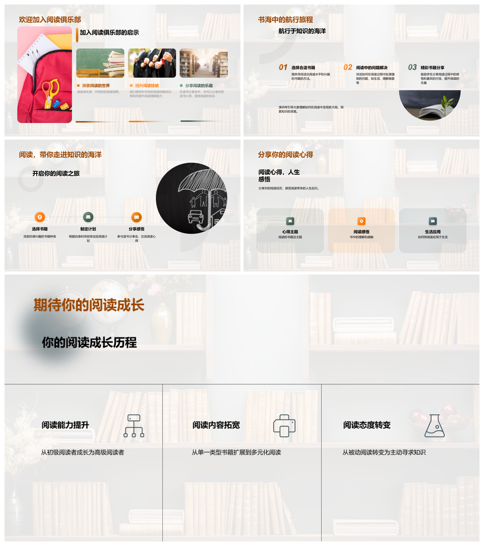 阅读俱乐部读书分享会讲座讨论提升能力书香满架PPT模板
