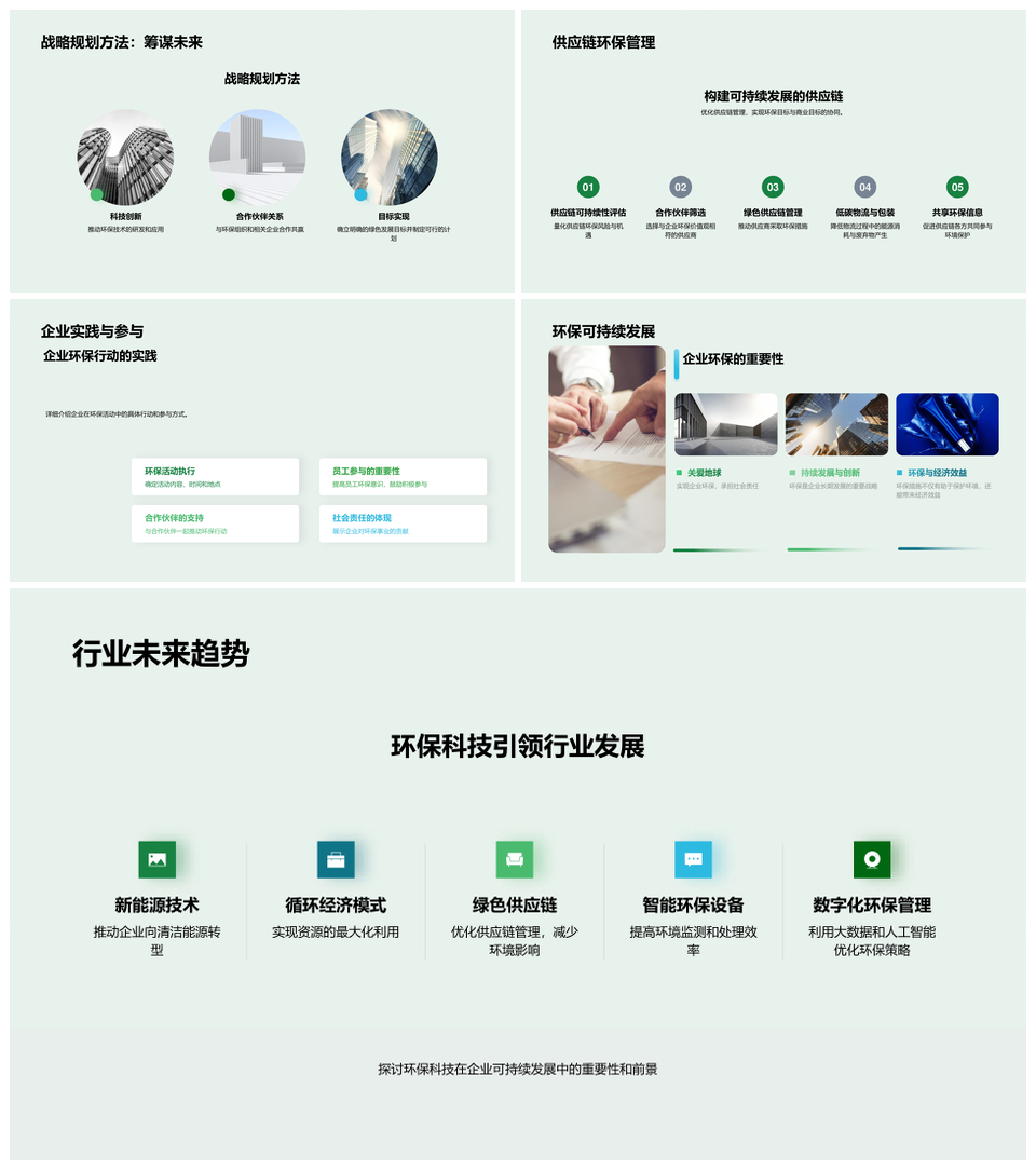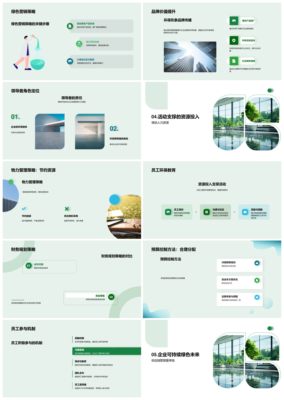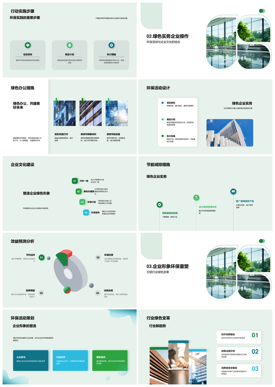 这是一张企业绿色行动践行环保责任策划节能减排PPT模板,包含企业、绿色行动、践行、环保责任、策划、节能减排等主题内容,也可用作企业践行环保责任、绿色行动策划节能、企业策划节能减排、环保责任策划节能、企业绿色行动践行、绿色行动践行环保、行动践行环保责任、践行环保责任策划、责任策划节能减排、企业绿色行动、绿色行动践行、行动践行环保、践行环保责任、环保责任策划、责任策划节能等PPT场景使用。 风云办公提供的企业绿色行动践行环保责任策划节能减排PPT模板,下载格式为pptx,一共33页,作品中文字及图均可以修改和编辑,图片更改请在作品中右键图片并更换,文字修改请直接点击文字进行修改。