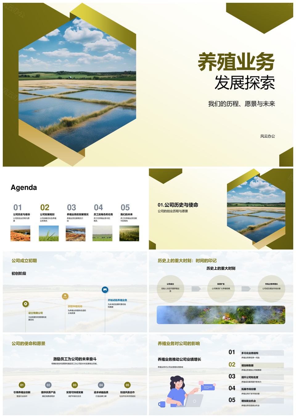 风云办公提供的养殖业务发展历程成果挑战未来规划PPT模板,下载格式为pptx,一共28页,作品中文字及图均可以修改和编辑,图片更改请在作品中右键图片并更换,文字修改请直接点击文字进行修改。