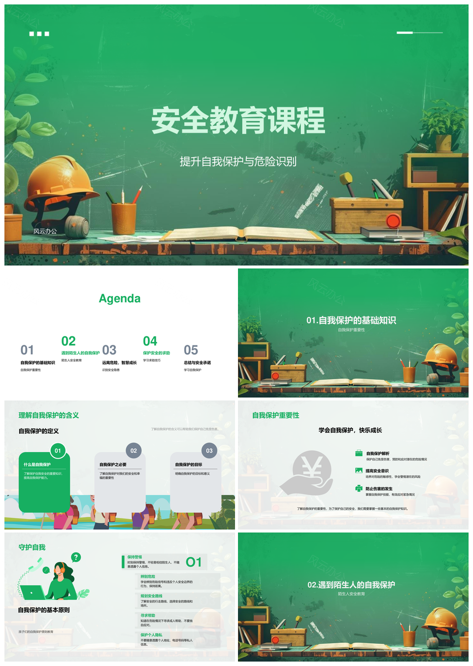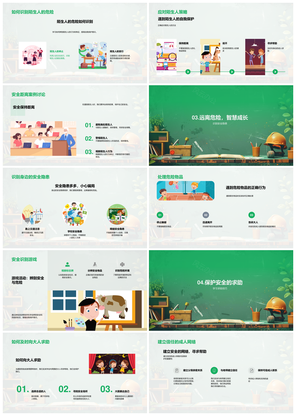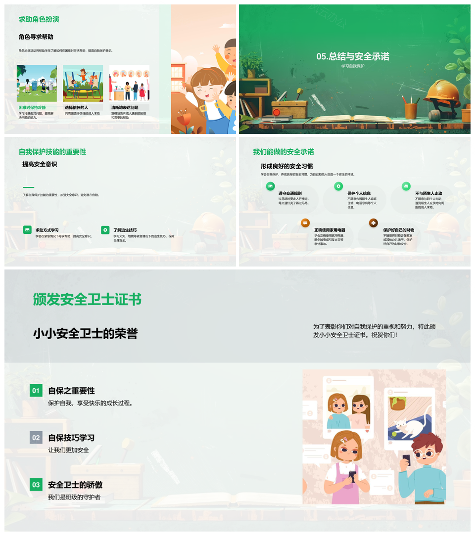 2025安全课程自护识险陌生人隐患求助承诺卫士证PPT模板推荐