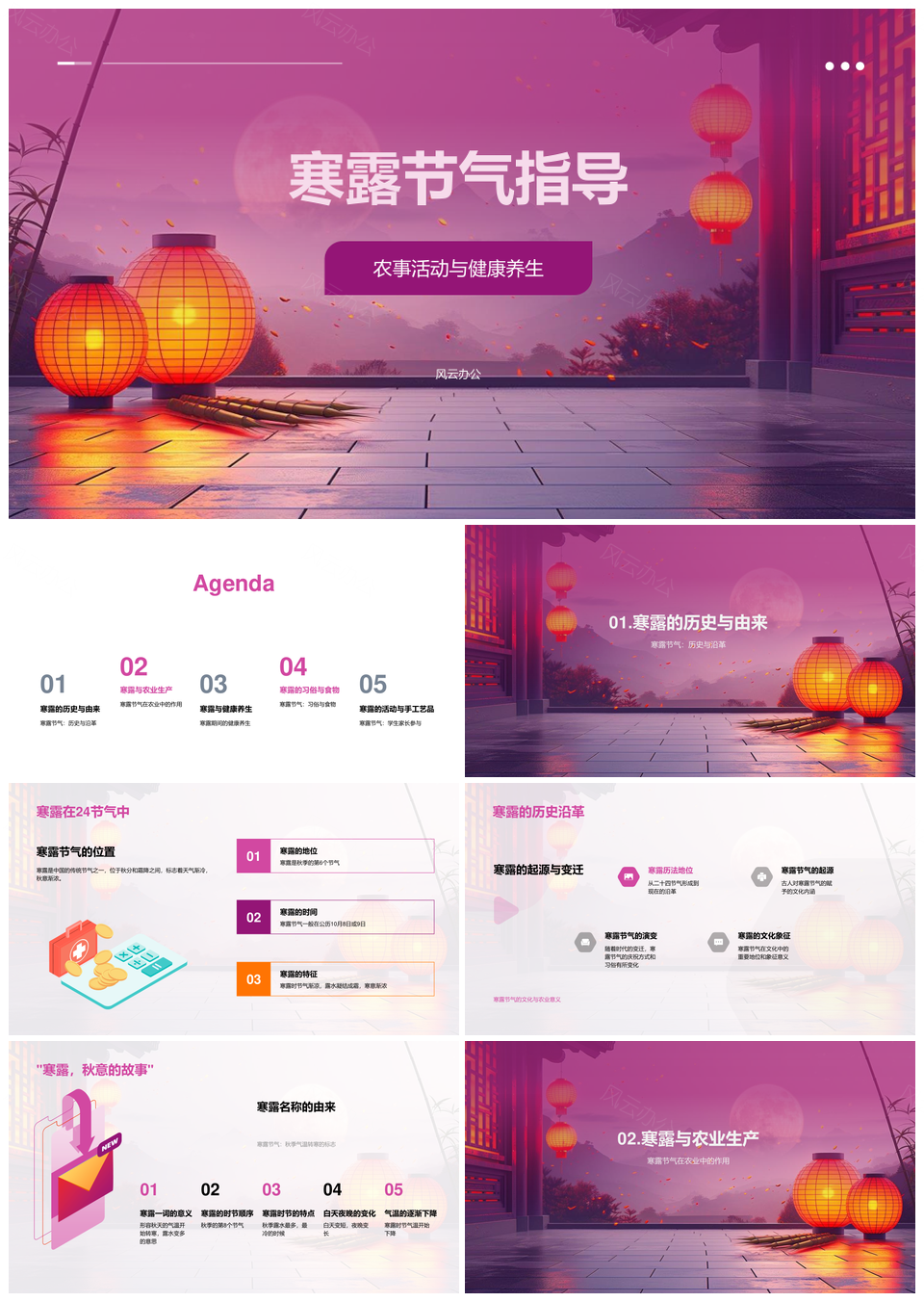 风云办公提供的寒露农事养生作物饮食习俗生产指导PPT模板,下载格式为pptx,一共23页,作品中文字及图均可以修改和编辑,图片更改请在作品中右键图片并更换,文字修改请直接点击文字进行修改。