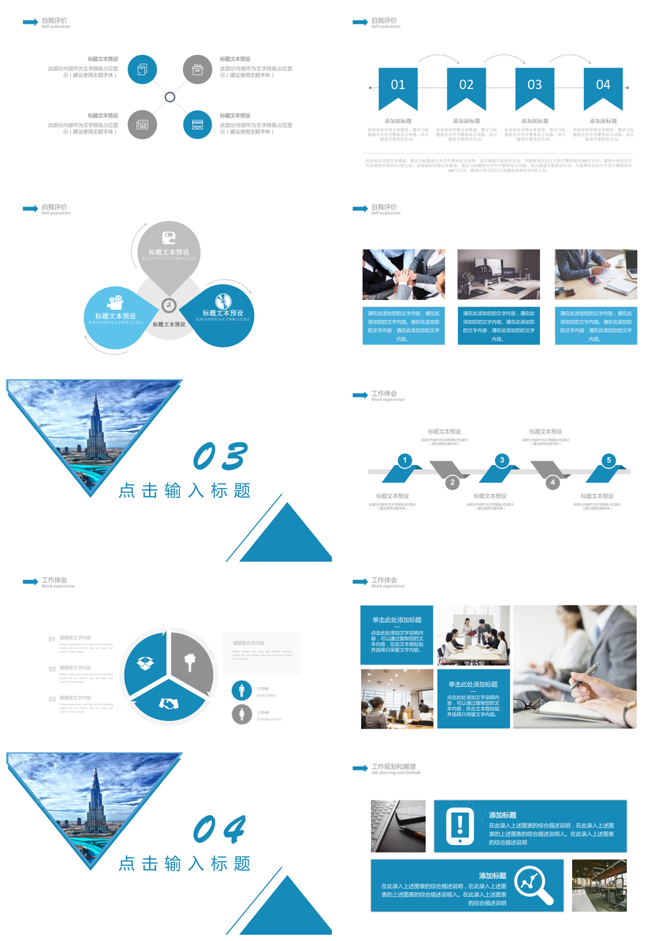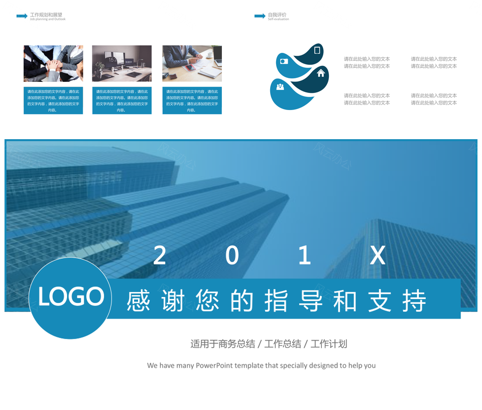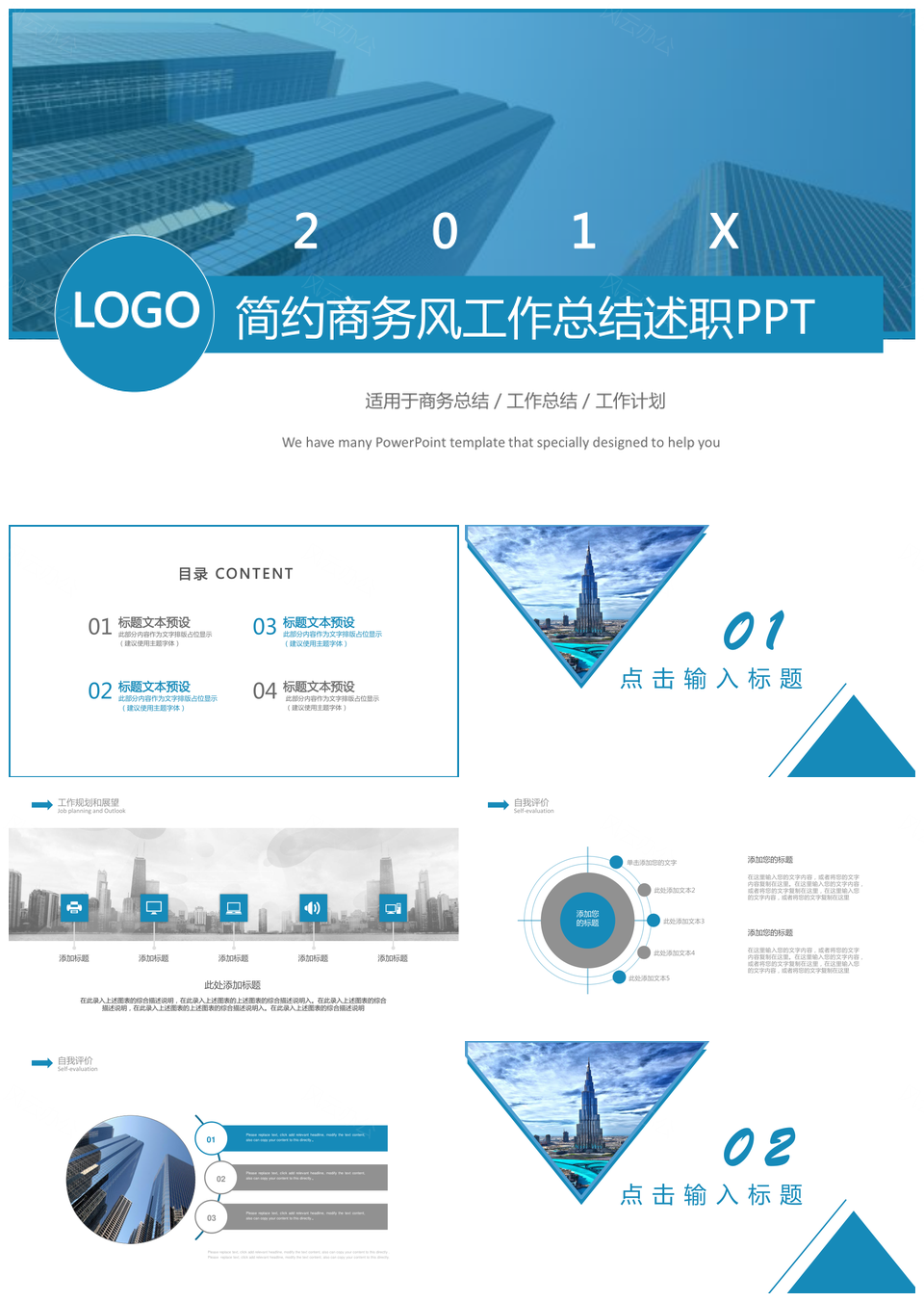 蓝色简约创意商务风工作总结述职报告PPT模板