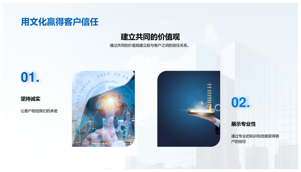 企业文化驱动战略决策员工筑客户信任大楼成功PPT模板