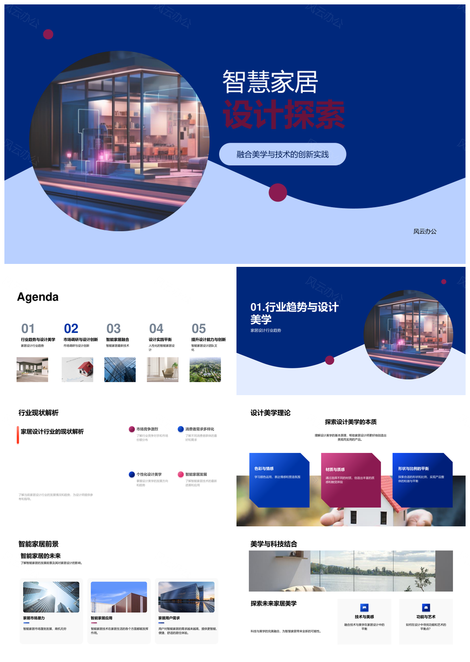 风云办公提供的智慧家居设计美学技术创新实践趋势PPT模板,下载格式为pptx,一共33页,作品中文字及图均可以修改和编辑,图片更改请在作品中右键图片并更换,文字修改请直接点击文字进行修改。
