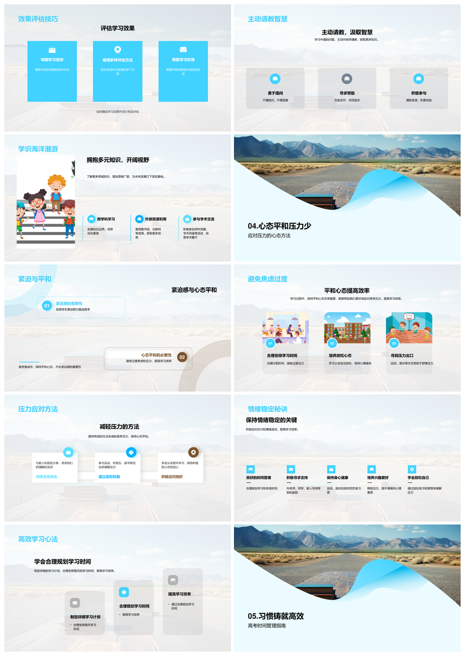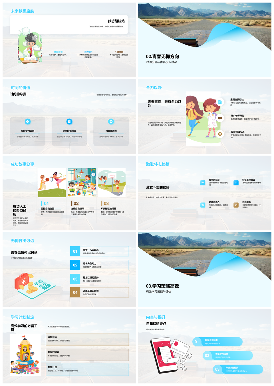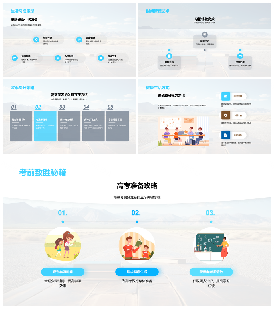 风云办公提供的高考策略规划习惯养成开启成功未来PPT模板,下载格式为pptx,一共33页,作品中文字及图均可以修改和编辑,图片更改请在作品中右键图片并更换,文字修改请直接点击文字进行修改。