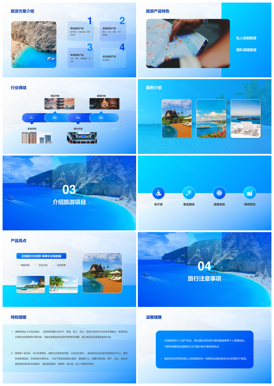 蓝色旅游宣传简约清爽景点度假商务风介绍PPT模板